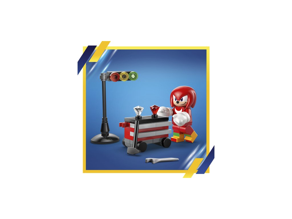 SILVER THE HEDGEHOG, KNUCKLES AND MORE – The building set includes the first-ever LEGO® minifigure of Silver, a Knuckles minifigure, a toolbox, tools, starting lights and red and white Chaos Emeralds