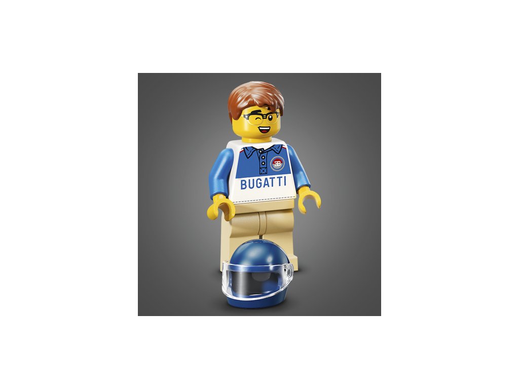 1 DRIVER MINIFIGURE – This race car set includes a driver minifigure wearing a Bugatti outfit and helmet with a wig and wrench, which can also be used to apply stickers and separate bricks