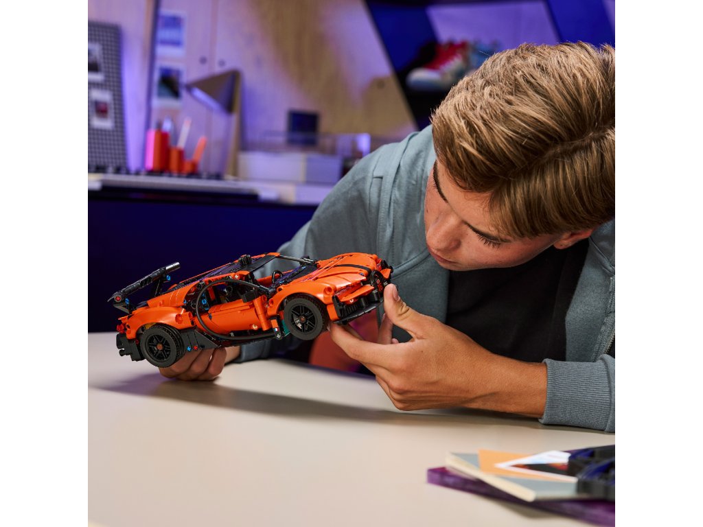 This detailed car model kit lets kids aged 9 and up build their own LEGO® Technic™ Chevrolet Corvette Stingray (42205). Boys, girls and fans of exciting car toys can have fun assembling the realistic details before exploring the authentic features. Check out the awesome color scheme and moving 8-cylinder engine and differential. Use the knob to steer the car then open the doors and hood to...