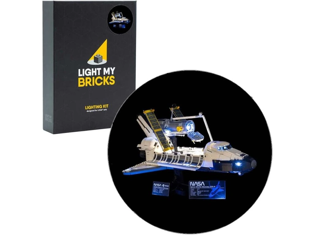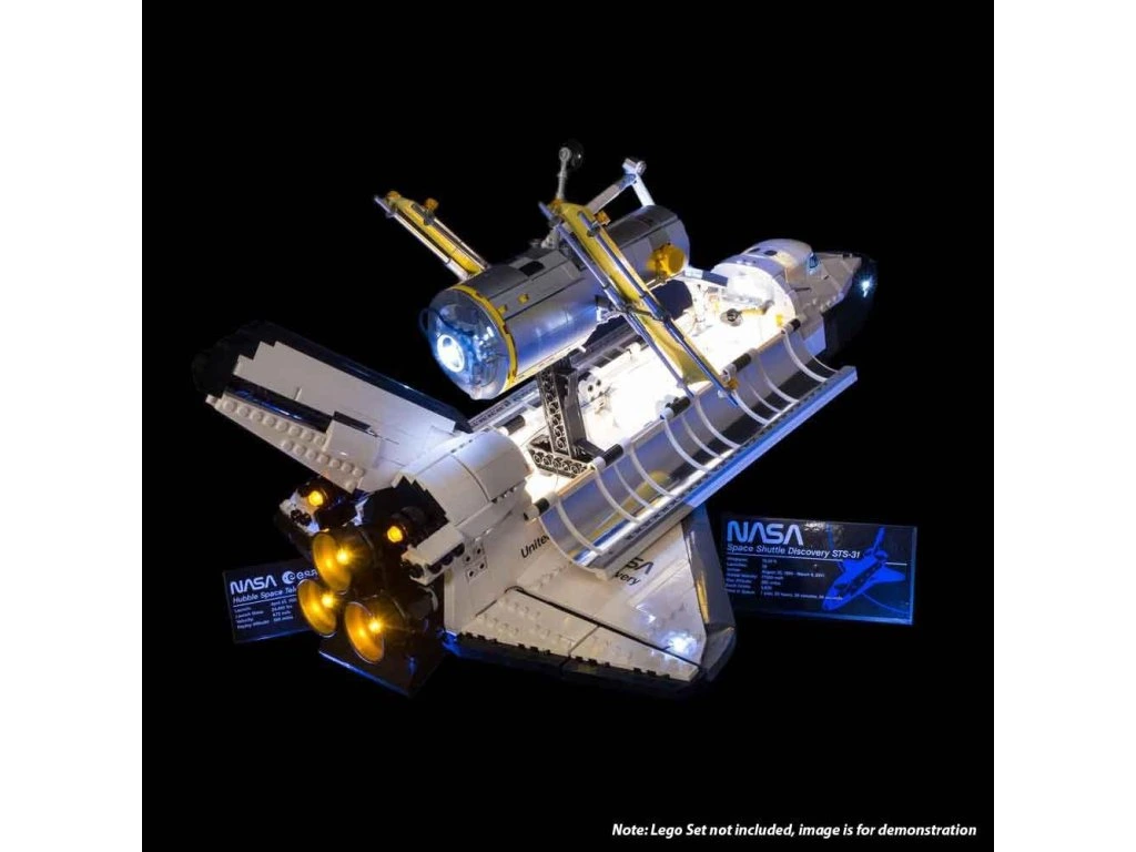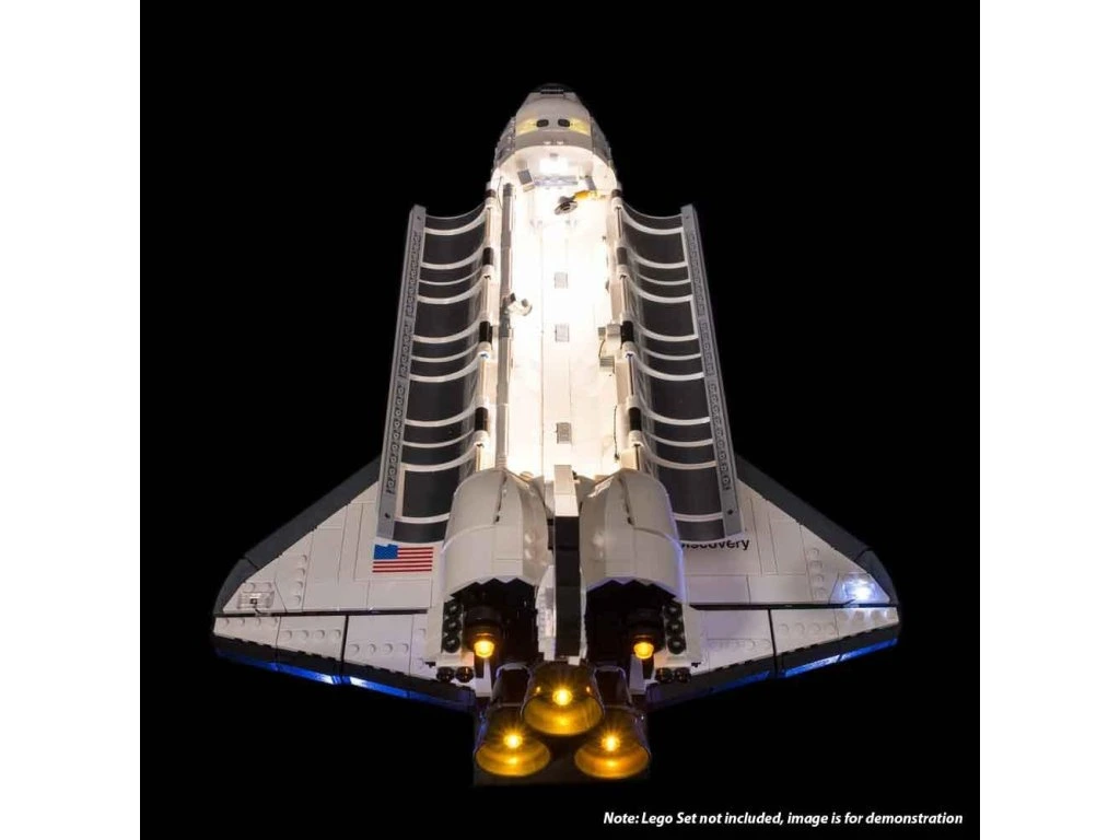 This Light My Bricks Flash Kit has been designed for the LEGO NASA Space Shuttle building kit with model number 10283. tuned. Light up your LEGO NASA Space Shuttle and Hubble Telescope with a Light My Bricks Lighting Kit. With over 20 individual LED lights, mission control will not miss your spaceship for a while. Turn on the indoor lighting via our NC Push Board when the loading bay is open. The light is off once closed and ready to be removed. This kit has been designed to enable one of the many display options that the kit offers. Light up and showcase your shuttle and telescope combination with the additional headlights provided as you wish. Light My Bricks Lego Lighting Kits offer Lego fans an easy way to customize their models with LED lights. With detailed step-by-step instructions, anyone can make their LEGO kit shine. This product contains: 1 x Light My Bricks Flash Kit designed for Lego Nasa Space Shuttle Discovery (Model Number 10283) USB wall adapter or USB power bank required.