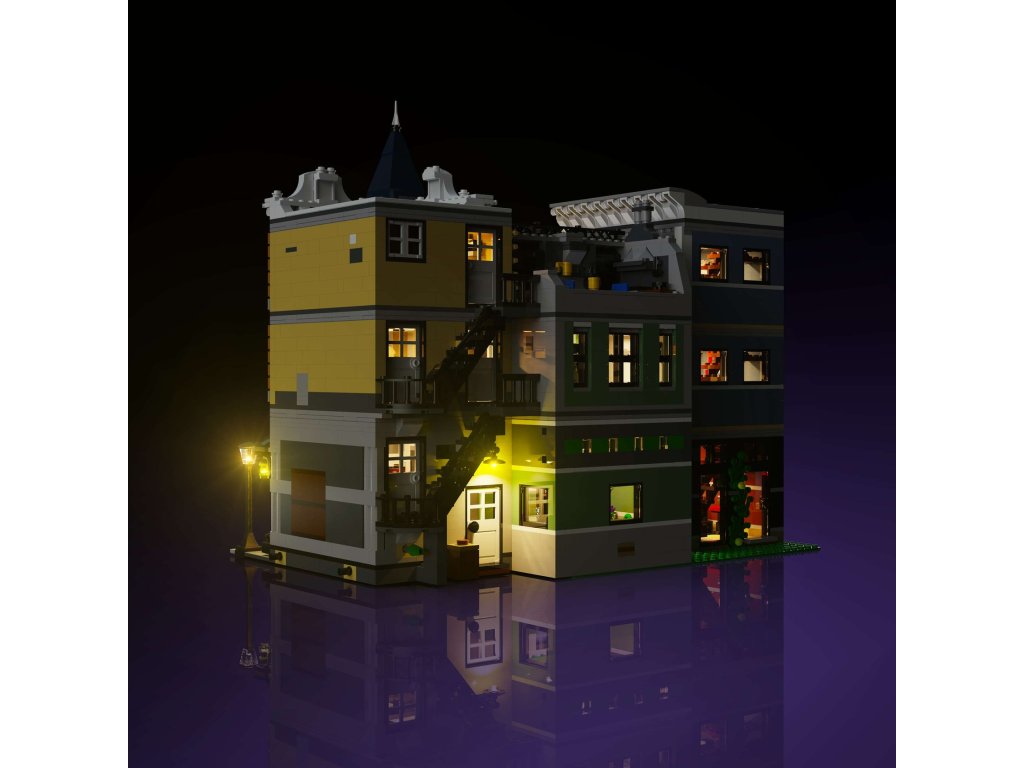 From the crime scene to the doughnut shop, each feature is meticulously lit for an immersive, eye-catching addition to your Modular Building collection.