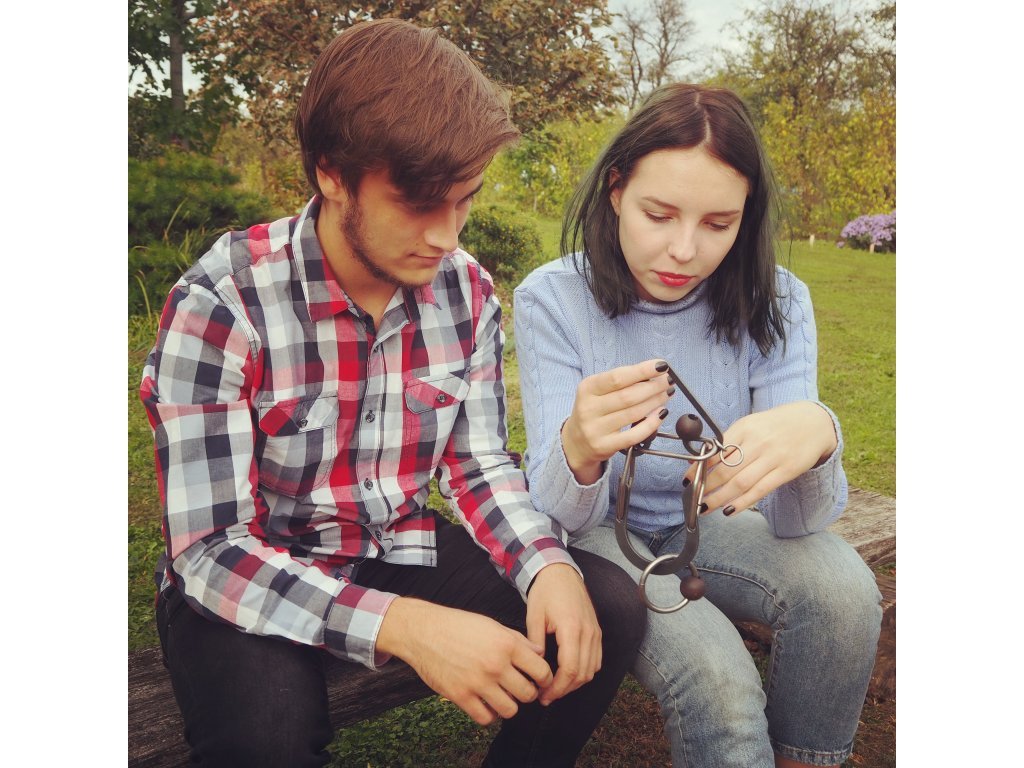 The puzzle is wrapped with the attached instructions in a jute bag. You should not use the instructions when solving the puzzle. They are for solvers who manage to solve the puzzle but cannot return it to its original state. It is also proof that it really is possible. :-)