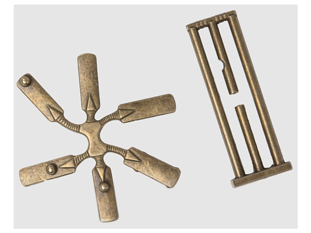 Your task is to remove the six-pointed star from the cage. To do this, you will need not only patience, but also a dose of creativity and knowledge of brass! This puzzle is a challenge for your mind and dexterity.