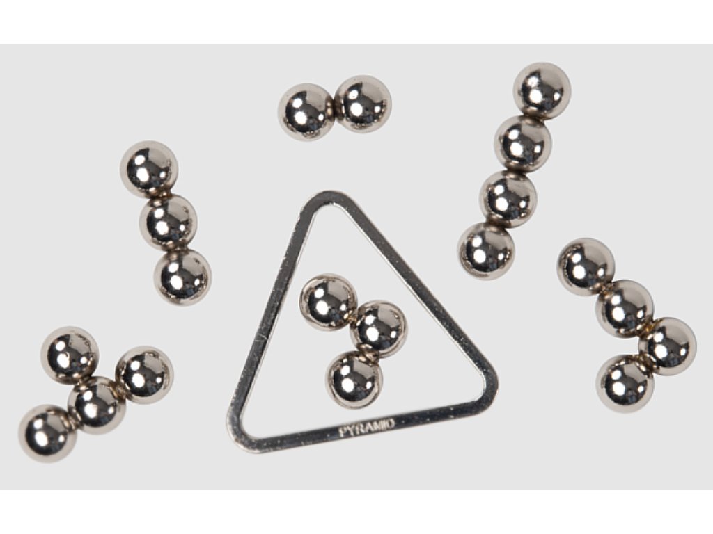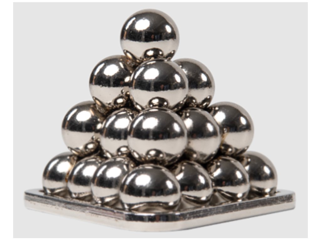 Stack all the nickel balls on top of each other to create a perfect pyramid on the grid provided. But be careful—it's not as easy as it looks! It requires the right formula and precision. Can you find the right way to do it?