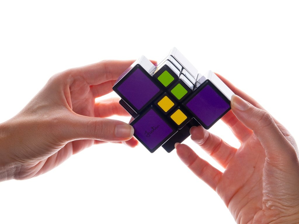 Don't be fooled by its simple appearance! At first glance, the Pocket Cube looks like a simple 2x2 cube, but what you see is not what you get. With an off-center axis and two different sized segments, this puzzle creates all kinds of strange shapes. Can you return the Pocket Cube to its original shape?
