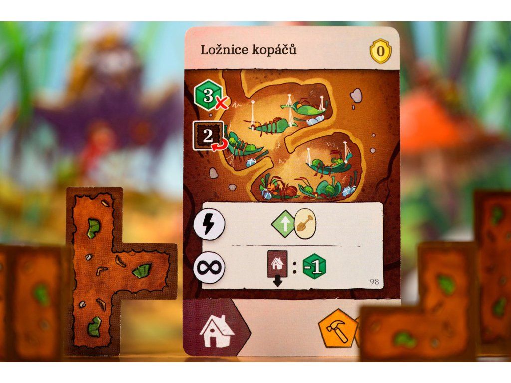 On your turn, you perform one of six main actions (Dig, Explore, Gather, Incubate, Play Cards, or Defeat Enemies), and you can take free actions to optimize your colony's efficiency.