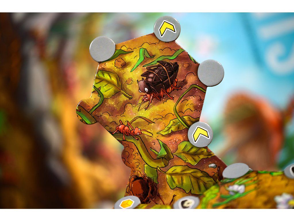 An important part of the game is managing your nest's architectural growth. Room tiles must be placed strategically to complete entire nest areas, immediately rewarding you with precious stars, one of the primary victory point sources. The garden map becomes a dynamic battlefield where your exploration reveals enemy tiles and resources, while gatherer ants create supply chains that automatically collect resources and emit pheromones when hexes are depleted.