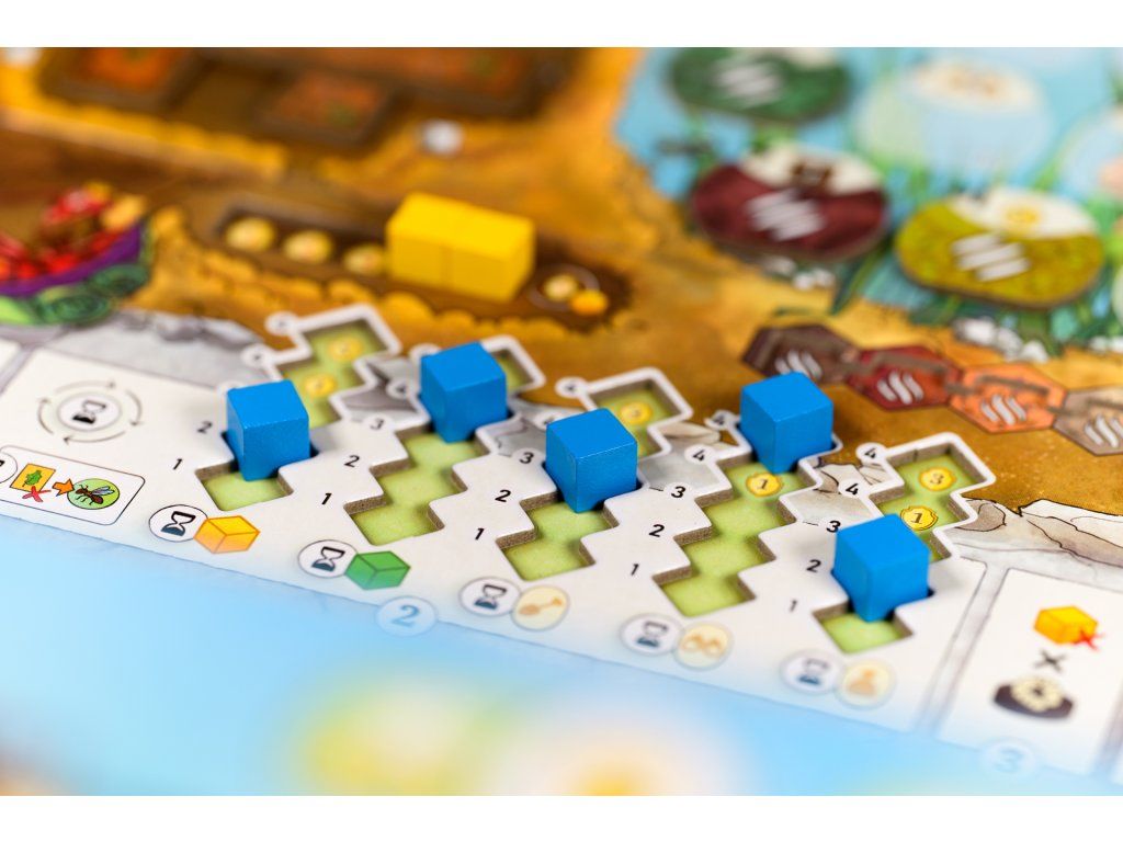 The heart of the game revolves around your colony's life cycle management. Your incubation board tracks three vital phases (eggs, larvae, and ants) each containing three specializations: diggers, explorers, and gatherers. Wild ants serve as valuable wildcards that can fulfill any specialization need. When you incubate, you complete enterprises, trigger production effects, feed your larvae with food cubes, and advance the life cycle.