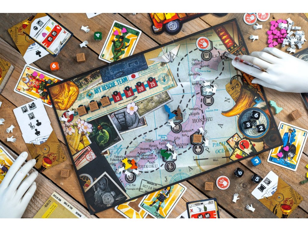 In the co-operative game The A.R.T. Project, you play together against the game. Each player draws two mission cards at the beginning of each round, then all players decide the order of the round. Your jerrycan reserves, weapons, allies, and clues are all held in common, and their management is essential. When you play a mission, you spend common resources and find clues that will be useful to everyone. Try to save seven works before the end of the mission deck...