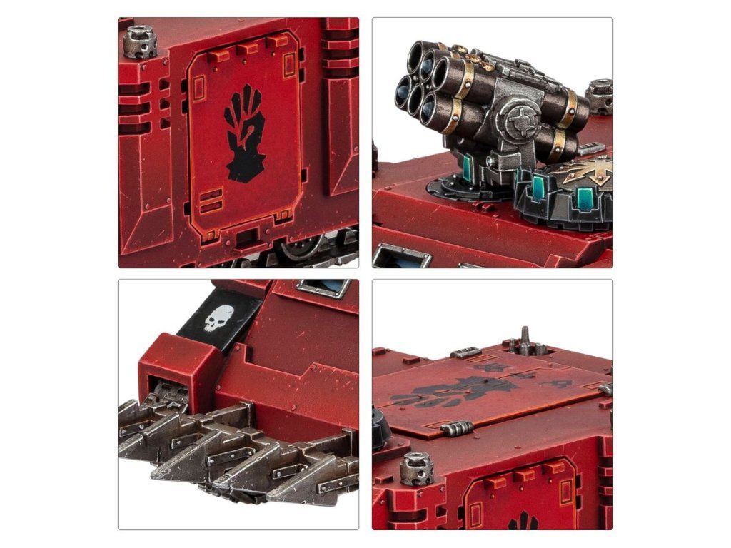 Chaos Rhino je dodáván s celou řadou volitelných symbolů Chaosu, držáků na trofeje, řetězů, háků, buldozerových hrotů, zkažených pancéřových plátů a havoc launcheru. Jeho kombi-bolter lze vylepšit na kombi-zbraň a je zde možnost volby střelce, řidiče nebo uzavřeného poklopu.