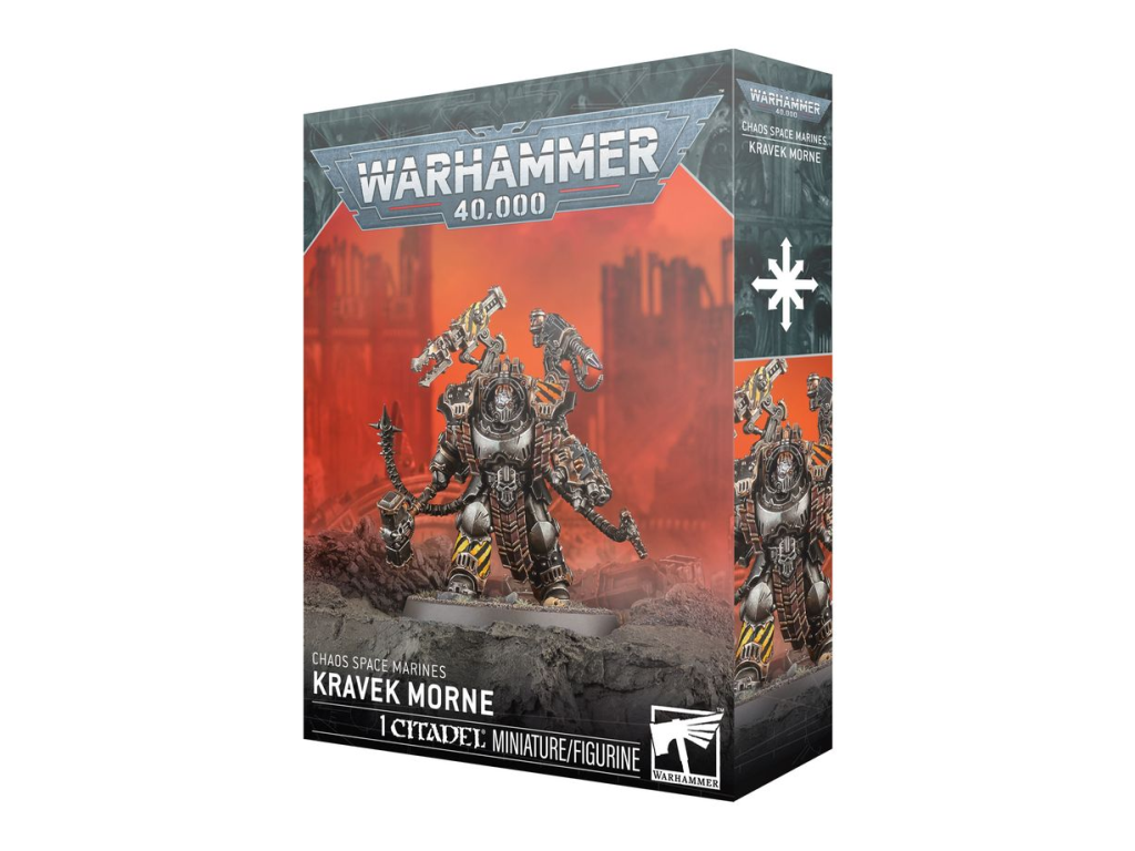Z této vícedílné plastové stavebnice sestavíte Kraveka Morneho, nezdolného válečného kováře pro vaše armády Chaos Space Marines ve hře Warhammer 40,000. Tento mohutný hromotluk je oděn do silně upravené terminátorské zbroje Cataphractii, vybavené mechatendrily a pomocnými zbraněmi, což z něj činí živou obléhací zbraň. Nosí Last Argument, své osobní hromové kladivo, a na rameni má namontovaný plamenomet, kterým vyhání kořist, která se snaží schovat v krytu. Kravek Morne není subtilní postava – nejlépe se hodí na přední linii, kde může rozdrtit nepřátele pod svým kladivem. Každý agresivní a přímý velitel ocení přítomnost Architekta zkázy ve své armádě.