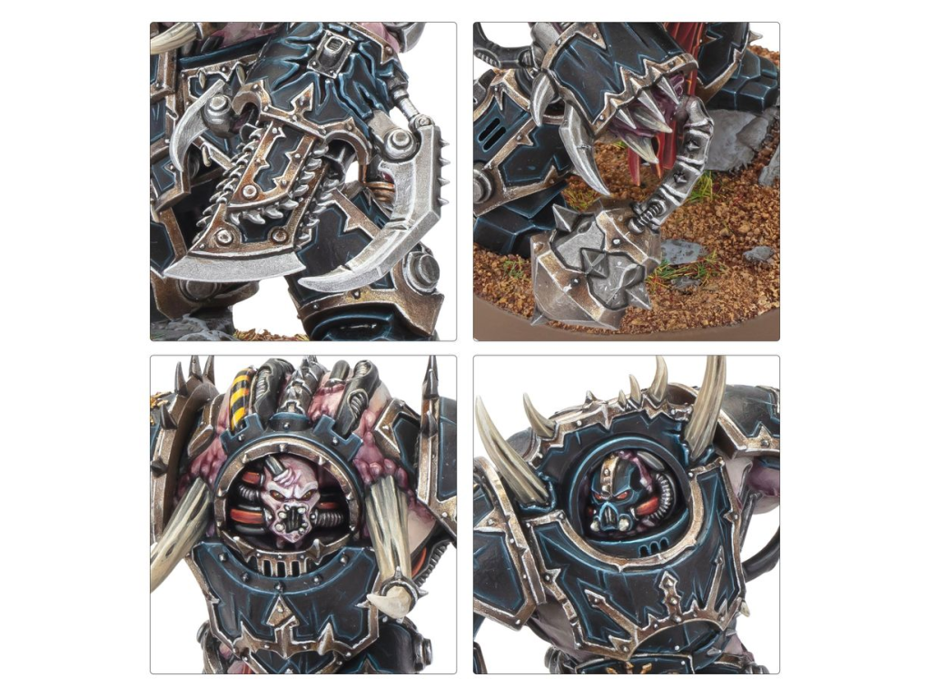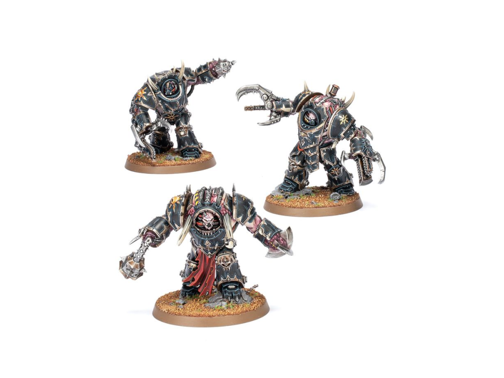 Oblečeni do zkroucené terminátorské zbroje jsou nyní zmutovaní k nepoznání, s pokrouceným masem a rohy trčícími ze švů jejich kdysi ušlechtilé zbroje. Jejich končetiny končí divokými shluky hrůzostrašných zbraní z masivního kovu, včetně těžkých palic a mohutných silových drápů. Samotné zbraně jsou v rámci jednotky zaměnitelné, což usnadňuje přizpůsobení vašich úderných jednotek, které prolomí nepřátelské linie.