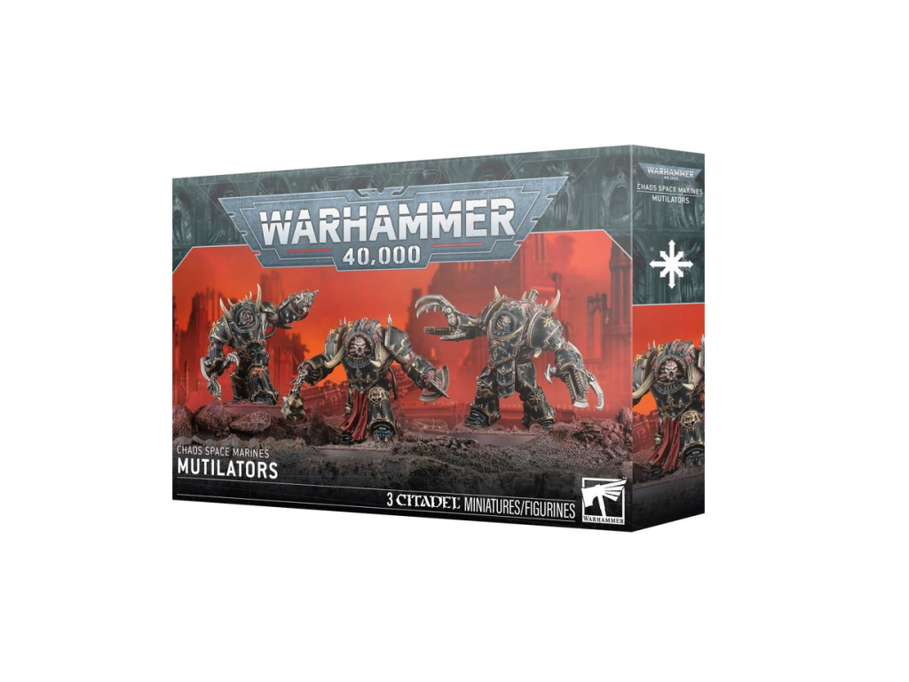 Z této vícedílné plastové stavebnice sestavíte 3 Mutilátory, živé beranidla pro vaše armády Chaos Space Marines ve hře Warhammer 40,000. Mají nezkrotnou touhu po zabíjení, kterou mohou ukojit pouze v boji zblízka. Mutilátoři mohou zhmotnit zkažené verze zbraní – děsivý zvuk tříštících se kostí a mlaskajícího masa doprovází kakofonie vrčení a řinčení, když se řetězové čepele a bodcové palice zhmotňují na koncích odporně svalnatých paží. S nově vytvořenými zbraněmi zdviženými nad hlavou jsou ideálními vůdci vašich drtivých útoků.