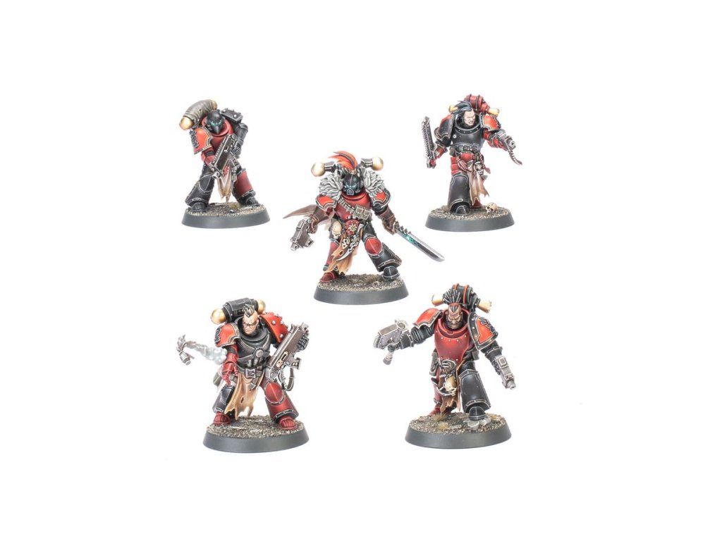 Jednoho z Red Corsairs lze sestavit jako volitelného šampiona, vyzbrojeného ručním plamenometem nebo boltpistolí, s možností výběru ze 2 hlav – s helmou nebo bez. Dalšího lze volitelně vyzbrojit energetickou pěstí a k dispozici jsou také dvě volitelné narativní pózy – házení granátu a pečlivé míření z boltpistole. K dispozici jsou také vyměnitelné zbraně a varianty hlav, díky kterým si můžete své drancující válečníky snadno přizpůsobit.