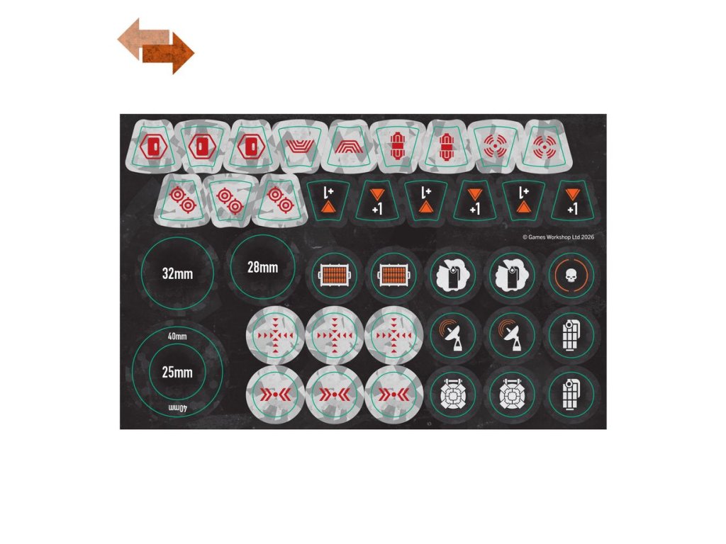 Uvnitř krabičky také najdete arch s 38 oboustrannými žetony XV26 Stealth Battlesuits, abyste mohli snadno sledovat své vybavení a herní efekty v zápalu boje.