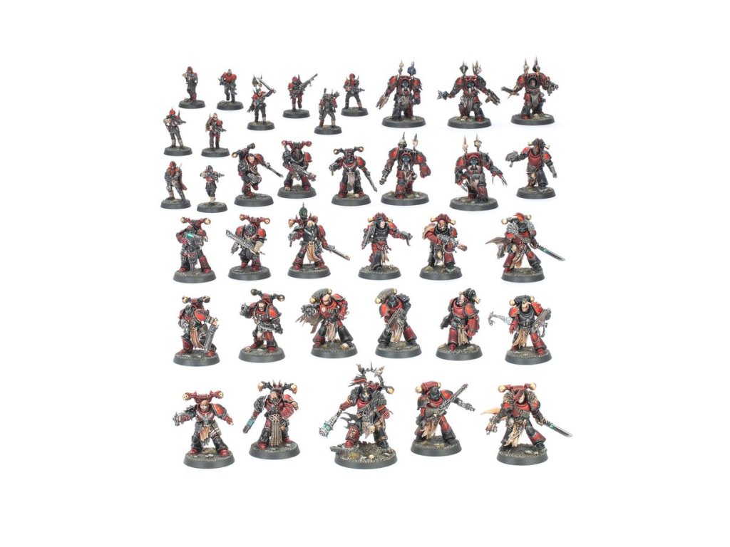 Tato zabalená krabice je ideální pro založení nové kolekce Chaos Space Marines s tématikou Rudých korzárů – nebo pro rozšíření stávající armády – kterou lze vypustit do hry Warhammer 40,000, a ve srovnání s nákupem sad samostatně šetří peníze. Tuto divokou sílu vede Red Corsairs Reave-Captain, nemilosrdný válečník, který vládne železnou pěstí. Po jeho boku stojí Rudí korzáři Raiders, odpadlí vesmírní mariňáci, kteří porušili svůj slib následovat Tyrana z Badabu. Mezi následovníky Hurona Blackhearta patří také veteráni Legionáři a Chaos Terminátoři, jejichž dlouholeté bojové zkušenosti Rudé korzáry dále posilují. Zrádní gardisti jsou zkušení v držení cílů nebo se vrhají na oslabené nepřátele. Dohromady představují zuřivou a děsivou sílu, ideální pro reprezentaci Odpadlického válečného oddílu – pravidla pro něj naleznete v brožuře The Maelstrom: Lair of the Tyrant – Detachments, která je k dispozici samostatně.