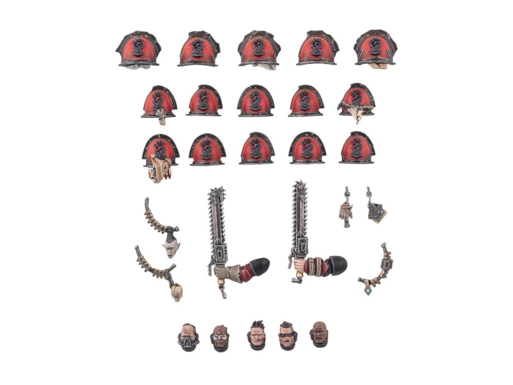 Vylepšovací rámeček Červených korzárů je navržen tak, aby fungoval s miniaturami Legionáři a Terminátorské jednotky Chaosu. Obsahuje pět holých hlav, 10 ramenních chráničů pro silové brnění, pět ramenních chráničů pro Terminátorské brnění a doplňky, jako jsou bandolíry, závěsné trofeje a řetězové meče.