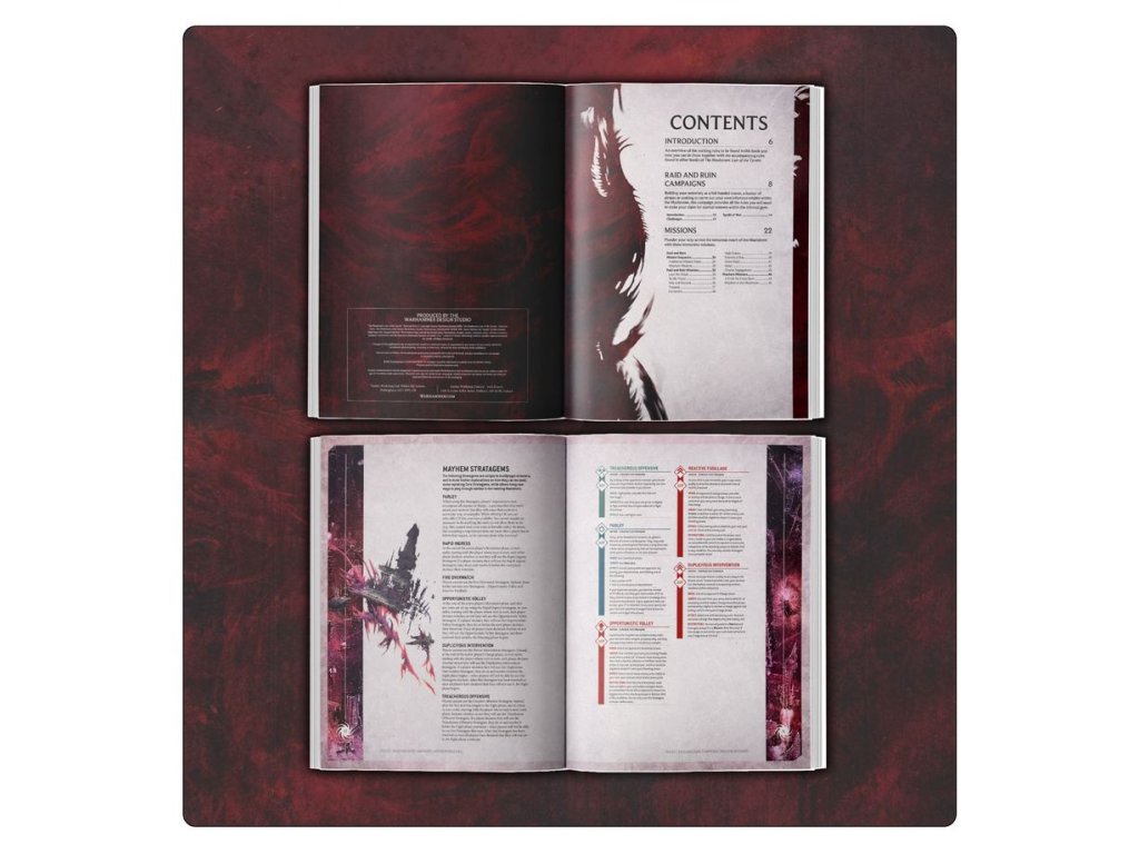 – The Maelstrom: Lair of the Tyrant – Raid and Ruin – 48stránková vázaná kniha s narativní kampaní, ve které můžete získat moc a kořist v Maelstromu, a také s misemi pro hraní proti sobě – najdete zde 12 misí Incursion, deset misí Raid and Ruin a dvě mise Mayhem.