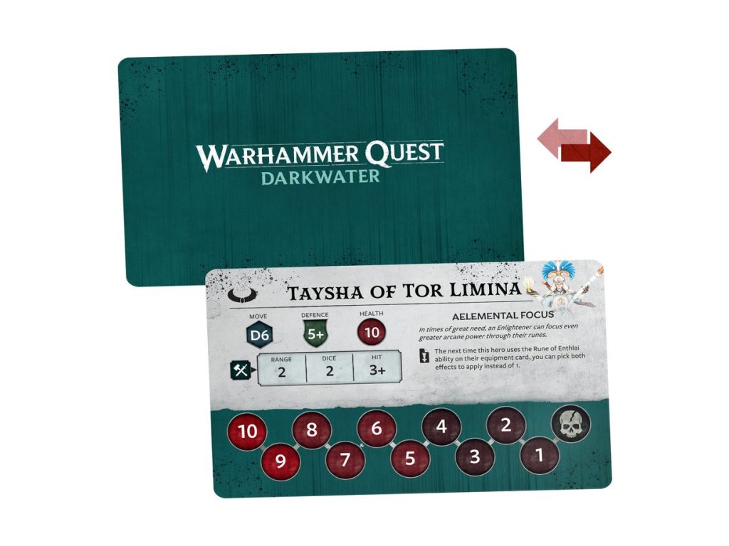 – Sada žetonů a karet pro Warhammer Quest: Darkwater, včetně 8x oboustranných žetonů, 4x karet postav Lumineth Realm-lords a 4x karet vybavení/vylepšeného vybavení