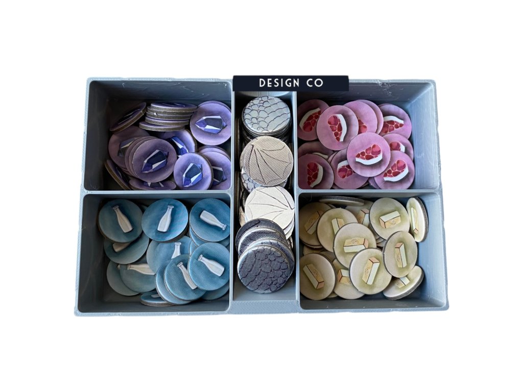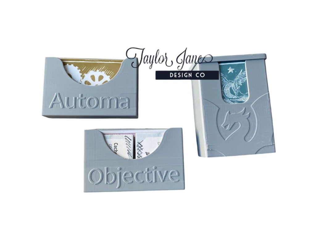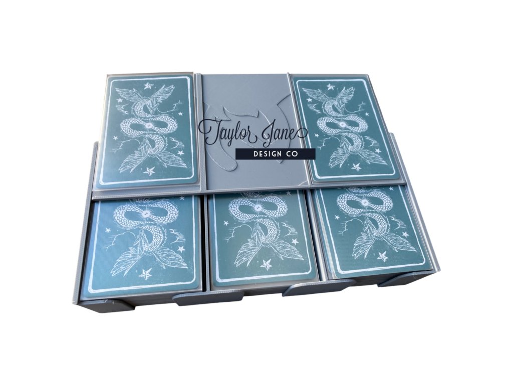 Posuvné víko na karty, které udrží vše na svém místě a zároveň slouží jako stojan během hry
