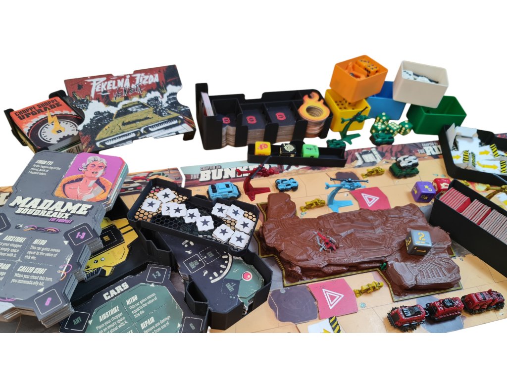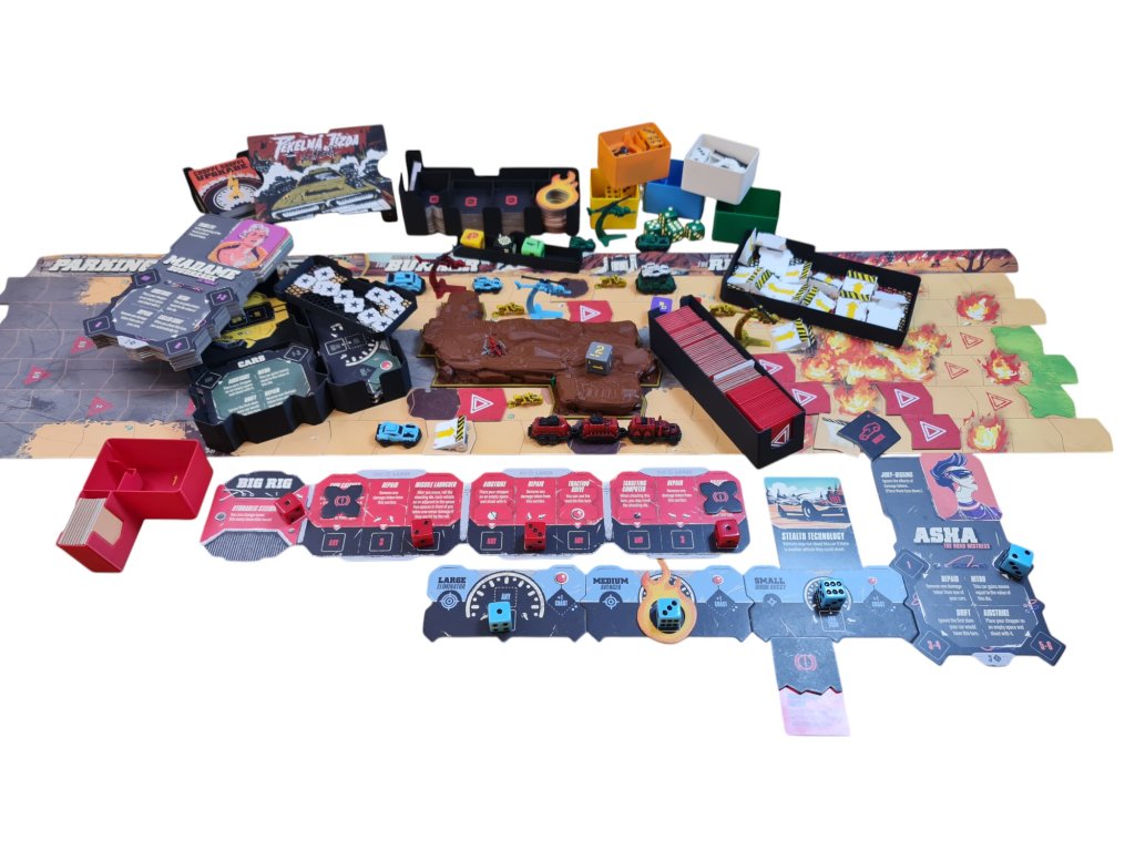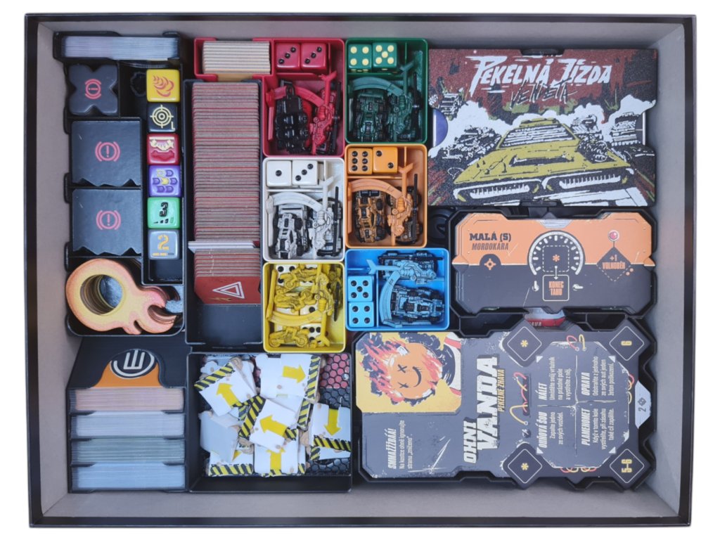Samozřejmostí je místo i na promo sígra OhniVanda a opět zde najdete i krabičku na 3D tištěné rampy a rezervu pro žetony nebezpečí.