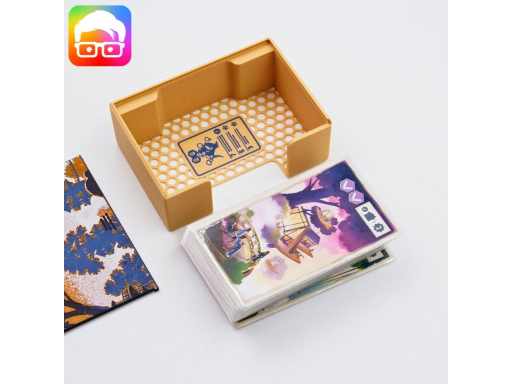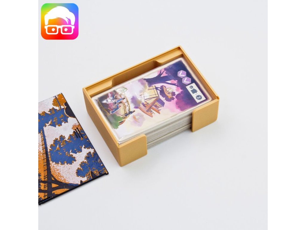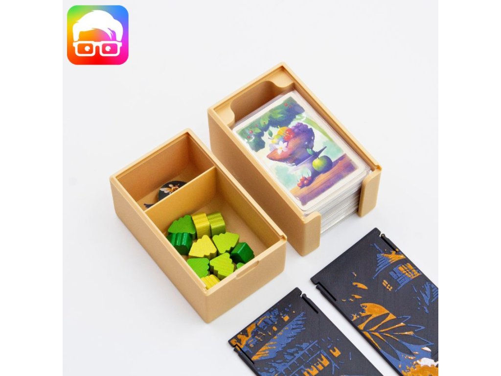 Insert je navržený tak, aby uspořádal všechny součásti základní hry uvnitř originální krabice. Díky zámkovým víčkům můžete krabici bez obav umístit vodorovně nebo svisle a z krabice nebude nic vypadávat. Insert podporuje obalené karty.