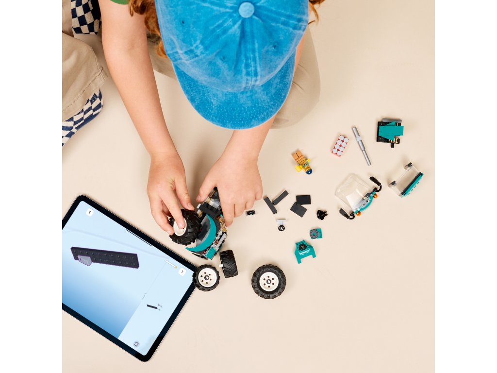 Děti si užijí stavění modelu LEGO Traktor s intuitivní aplikací LEGO Builder, která jim umožňuje přibližovat a otáčet model ve 3D a ukládat a sledovat postup stavění. Stavebnice obsahuje 204 dílků.