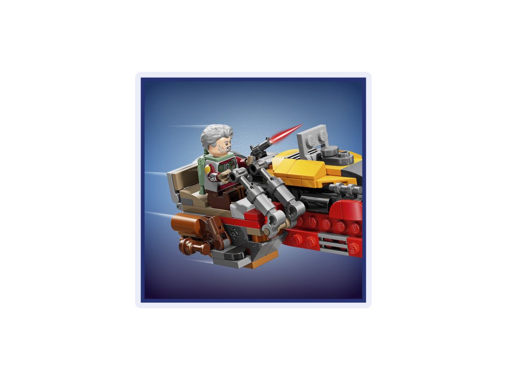 - ZÁBAVNÉ DOPLŇKY – Otevřete skrytou přihrádku spídru a objevte doplňky včetně helmy Boby Fetta a kartonu mléka banthů