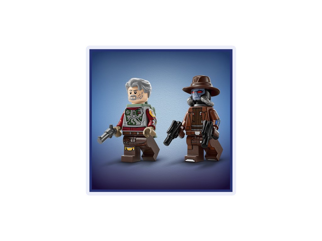 - 2 MINIFIGURKY LEGO® STAR WARS™ – Vybavte Cobba Vantha blasterovou pistolí, tryskovým batohem a brněním a helmou Boba Fetta, aby mohl čelit Cadu Baneovi se 2 blasterovými pistolemi