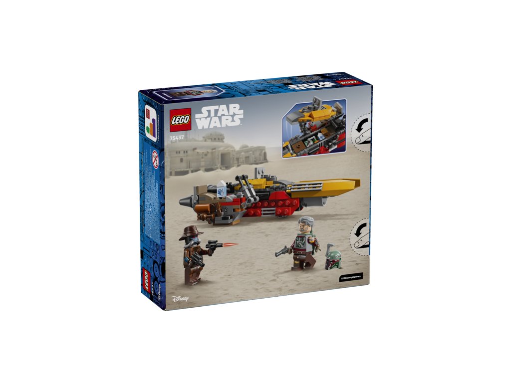 Spojte se s Cobbem Vanthem a pusťte se do akčních soubojů proti Cadovi Banemu s touto strhující stavebnicí LEGO® Star Wars™ (75437) pro děti. Postavte si propracovaný model úžasného spídru Cobba Vantha ze seriálu Star Wars: Mandalorian z kostek LEGO. Nechybí sedadlo řidiče pro minifigurku LEGO Cobba Vantha, klip na pistoli a skrytou přihrádku na uložení doplňků, včetně helmy Boba Fetta a kartonu mléka banthů. Součástí balení je minifigurka LEGO Cada Banea vybavená 2 blasterovými pistolemi a Cobb má také tryskový batoh pro akční hru ve vzduchu. Tato stavebnice poslouží jako parádní dárek pro kluky, holky a fanoušky seriálu Star Wars: Mandalorian nebo Star Wars: Boba Fett™ od 7 let a při hraní zažehne dětskou představivost. Děti si vychutnají intuitivní stavění s aplikací LEGO Builder, která jim umožní přibližovat a otáčet model ve 3D, ukládat a sledovat pokrok. Stavebnice obsahuje 207 dílků.