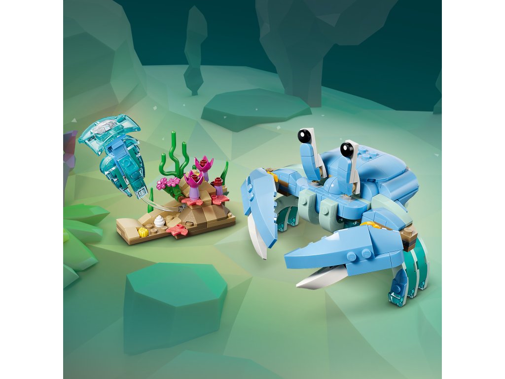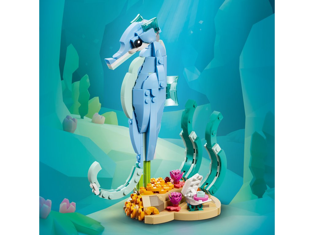 Děti si můžou sestavit dynamický model dospělého delfína s mládětem s pohyblivými částmi, kteří plavou na vlně nad korálovým útesem. Toho pak přestaví na pohyblivého mořského koníka na barevném podstavci s mořskými řasami a polohovatelnou mušlí nebo na kraba vedle mořských rostlin a medúzy. Až si děti dohrají, modely si můžou hrdě vystavit na poličce nebo na stole jako krásnou přírodní dekoraci.