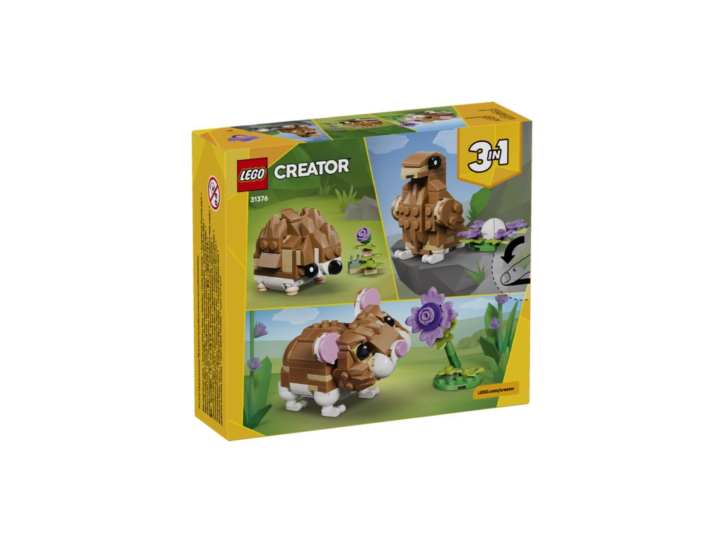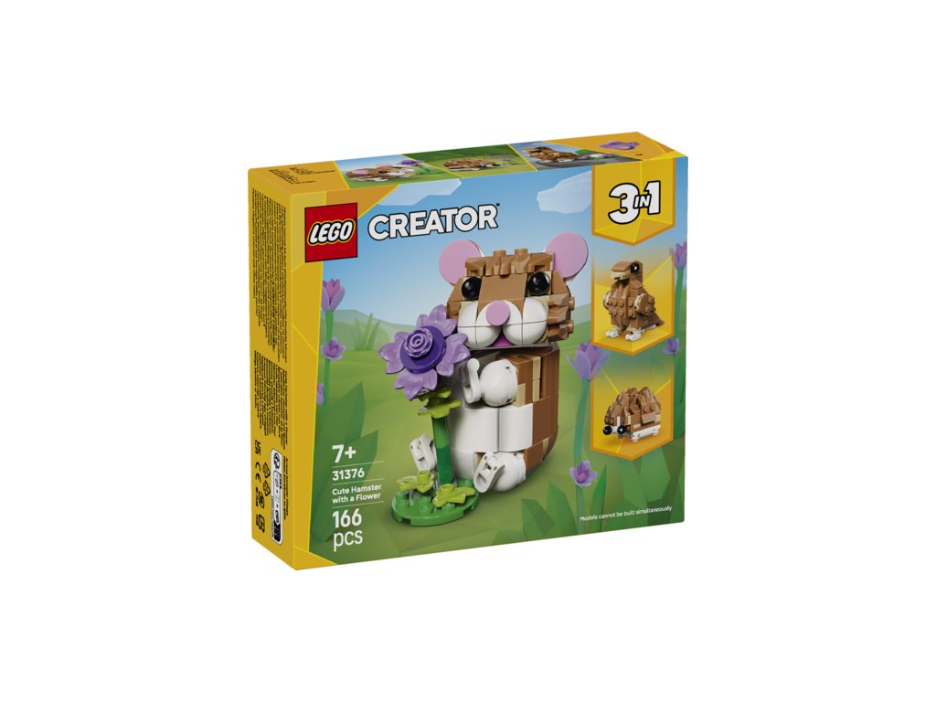 HRAČKA 3 V 1 PRO DĚTI – Se stavebnicí LEGO® Creator 3 v 1 Roztomilý křeček s květinou (31376) si holky a kluci od 7 let postaví a přestaví 3 roztomilé hračky ze stejné sady kostek