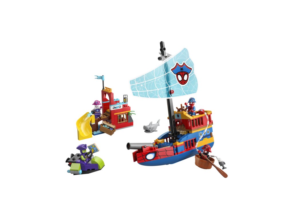 Tato stavebnice se Spideym je plná funkcí a obsahuje pirátskou loď, Pavoučí ostrov se skluzavkou, loď Zeleného Goblina a menší člun. Na pirátské lodi najdete dělo, na ostrově je vystřelovač disků a na lodi Zeleného Goblina najdete vystřelovače. Pomocí Spideyho pavučinového lana můžete chytat ryby, vylovit truhlu s pokladem nebo loď Zeleného Goblina. Tento dárek s motivem Spider-Mana pro fanoušky seriálu Spidey a jeho úžasní přátelé obsahuje barevný obrázkový návod, začátečnickou kostku a samostatné sáčky – v každém je jeden sestavitelný model –, díky kterým bude stavění snadnější, rychlejší a zábavnější. A s aplikací LEGO® Builder děti můžou přibližovat a otáčet modely ve 3D a sledovat postup pomocí jednoduchého digitálního návodu. Stavebnice obsahuje 201 dílků.