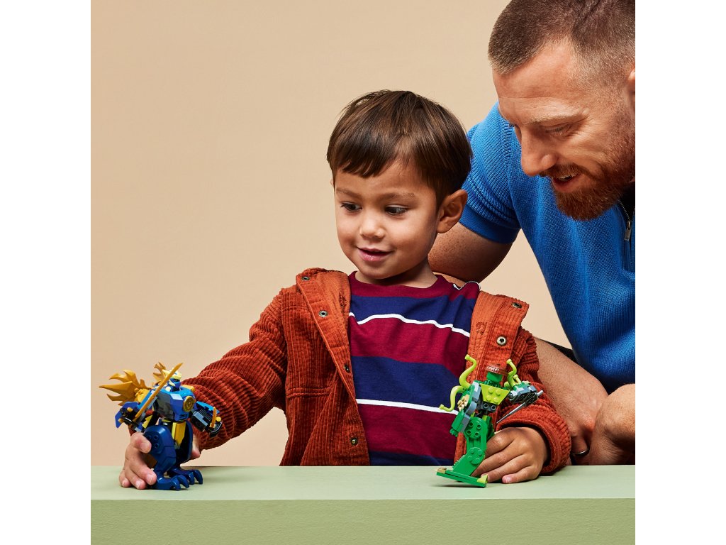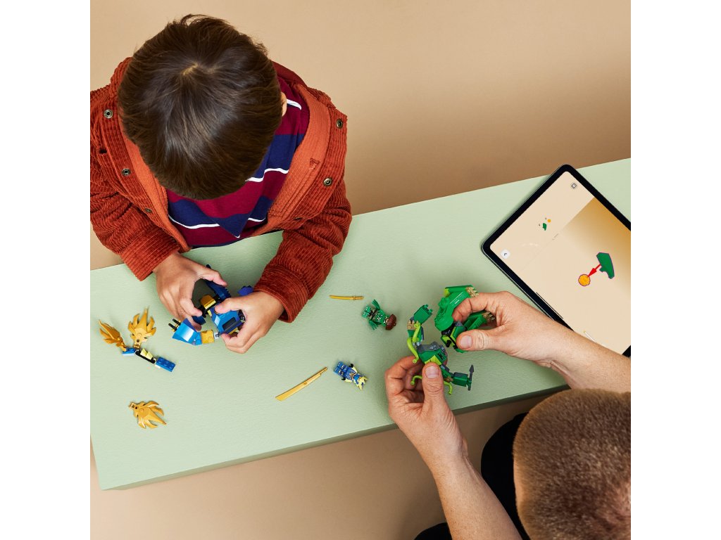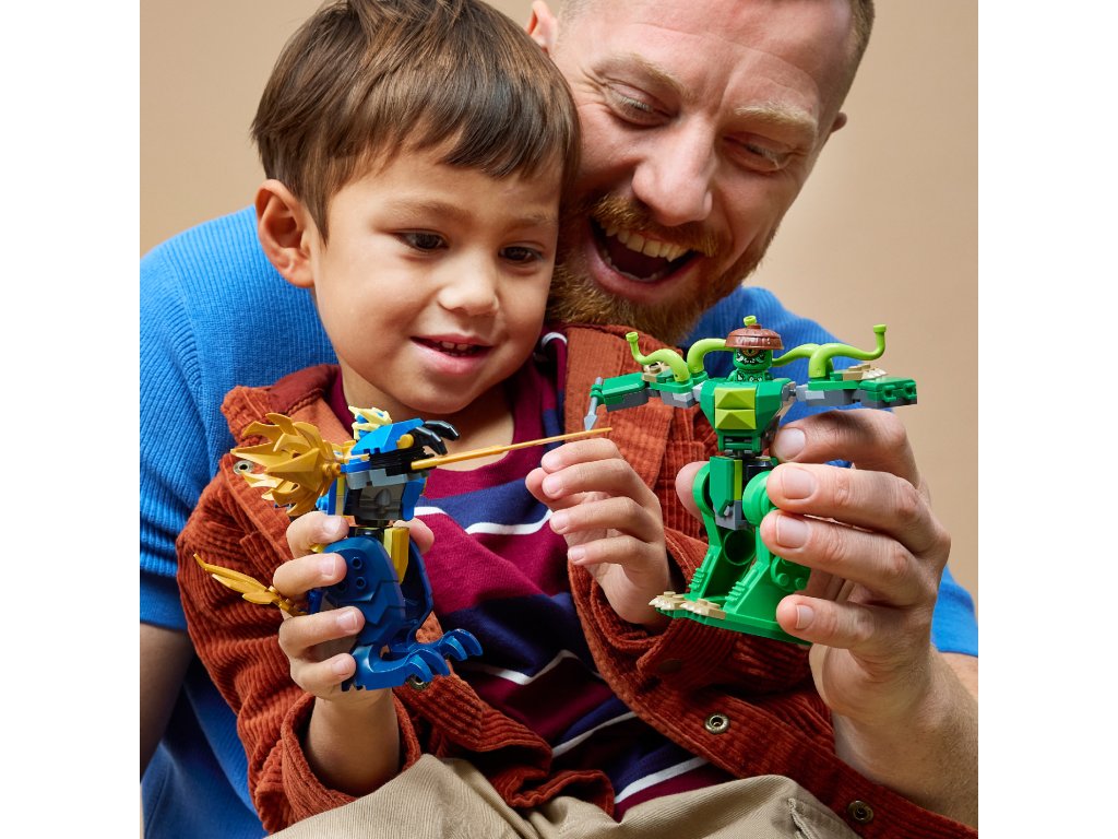 NAUČTE SE STAVĚT S ROBOTICKÝMI OBLEKY – Kluci a holky od 4 let se se stavebnicí LEGO® NINJAGO® Jay a boj v dračím robotickém obleku (71853) naučí stavět a pak si užijí hraní na nindžovské bitvy