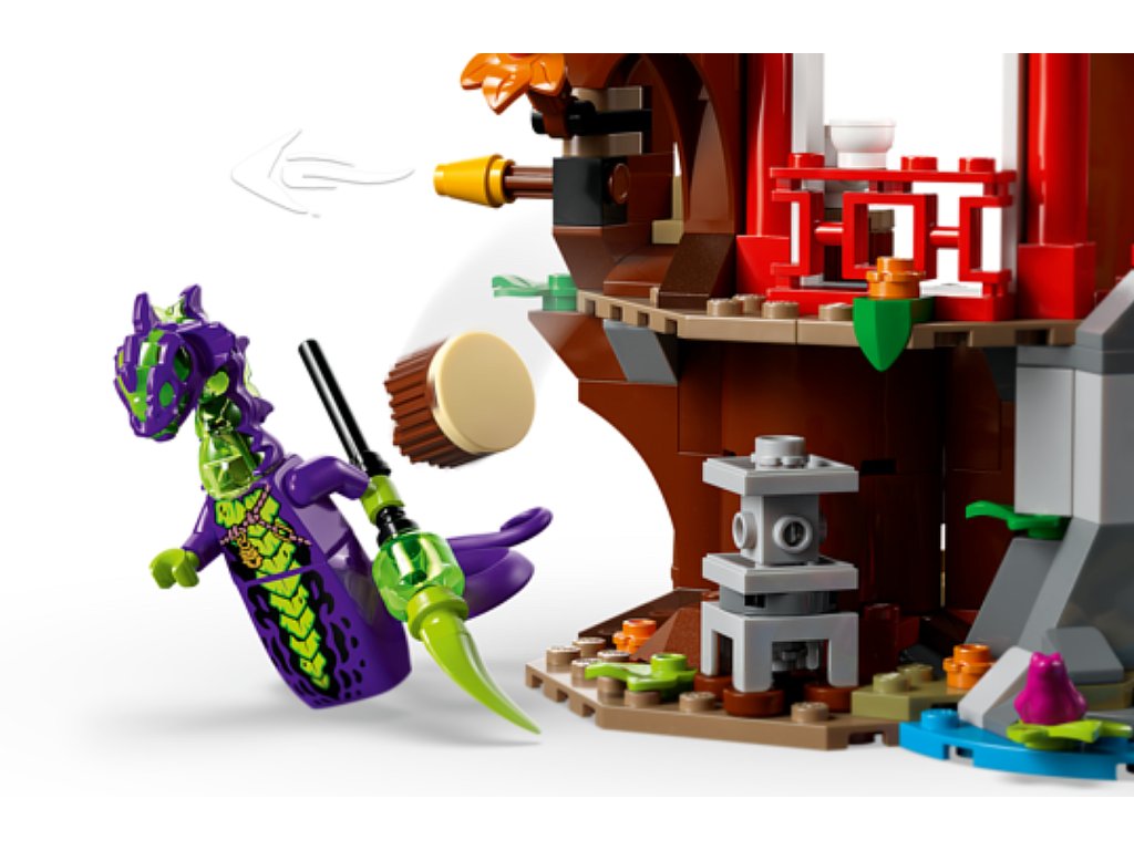 ROZMĚRY – Tato stavebnice NINJAGO® se skládá z 642 dílků a obsahuje dům na stromě, který měří přes 22 cm na výšku, 26 cm na šířku a 15 cm do hloubky