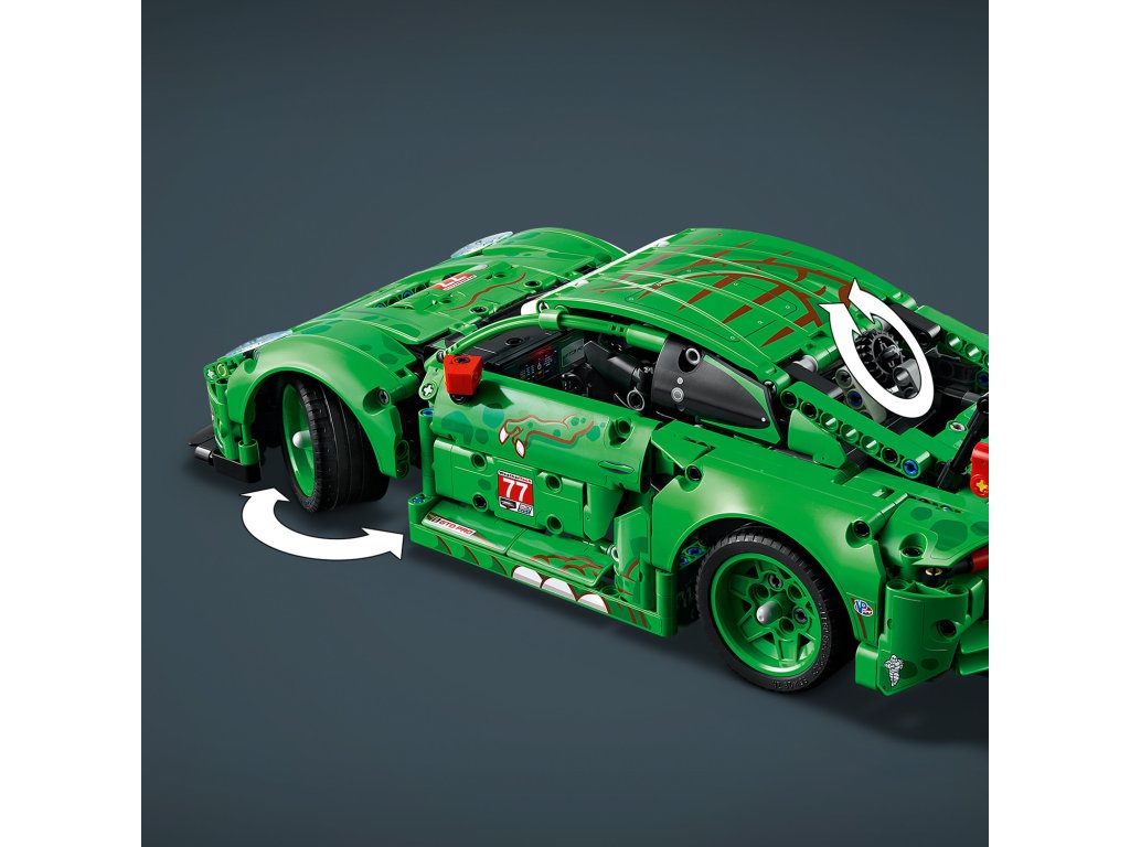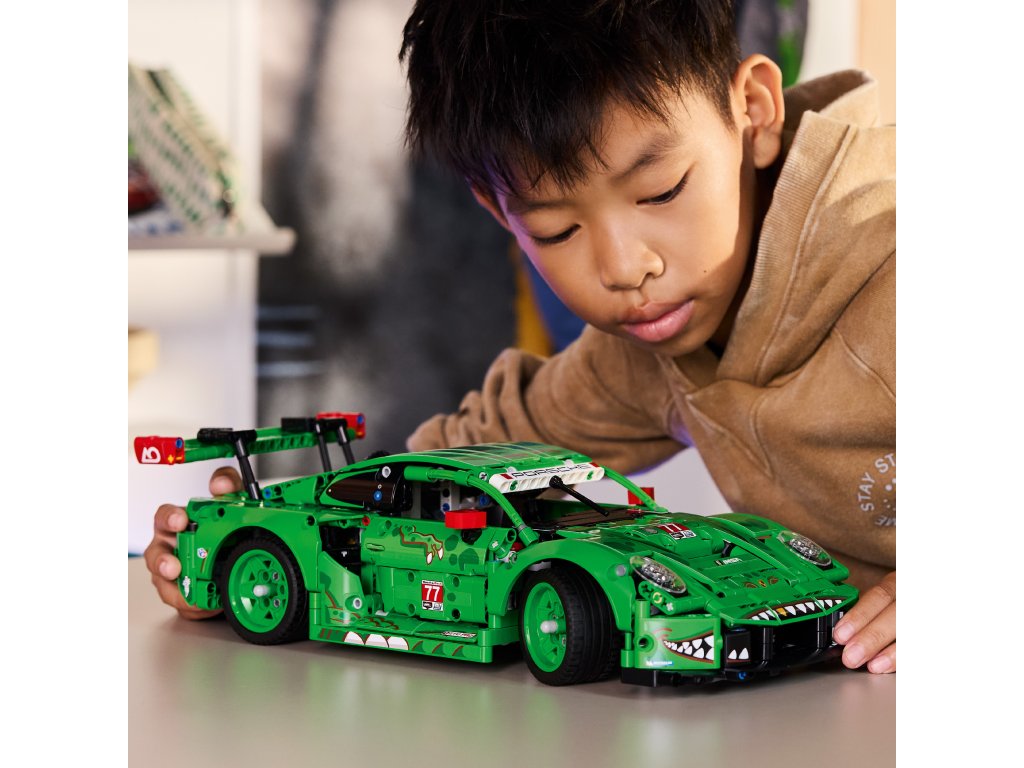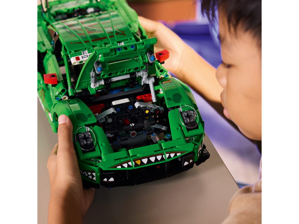 Nastartujte napínavou hru s tímto závodním autem s motivem dinosaurů pro děti od 11 let. Model LEGO® Technic Auto Porsche 911 GT3 R REXY AO Racing (42224) je plný zajímavých detailů a je stvořen pro kluky a holky, kteří milují akční jízdu.