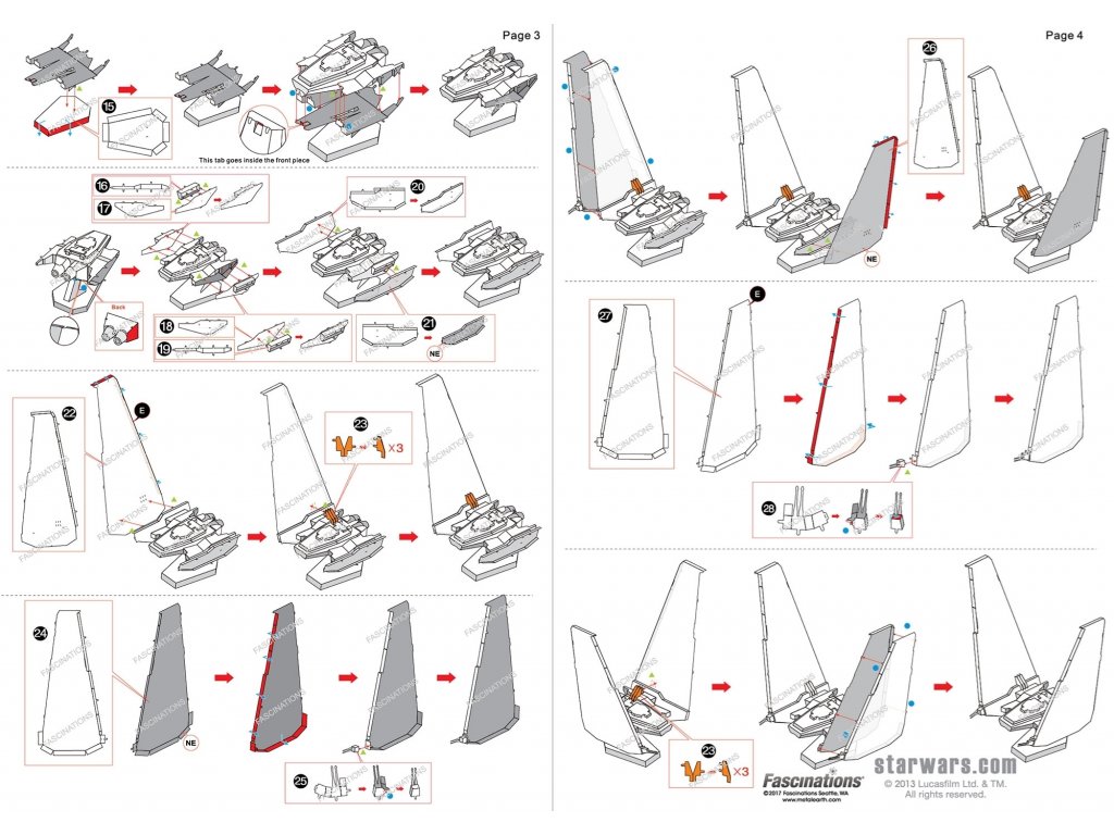 Jednotlivé díly vyjměte z kovových plátků, v případě potřeby použijte malé štípací nůžky (nejsou součástí). Dílky se spojují k sobě pomocí zámků tvořených úchytem (zobáčkem) a otvorem. Zobáček ohněte pomocí malých tenkých kleští (nejsou součástí) a postupně spojte všechny zámky až vznikne velmi realistický mistrovský kousek!
