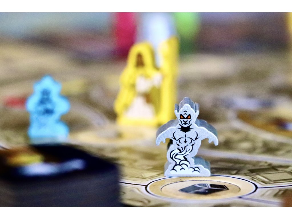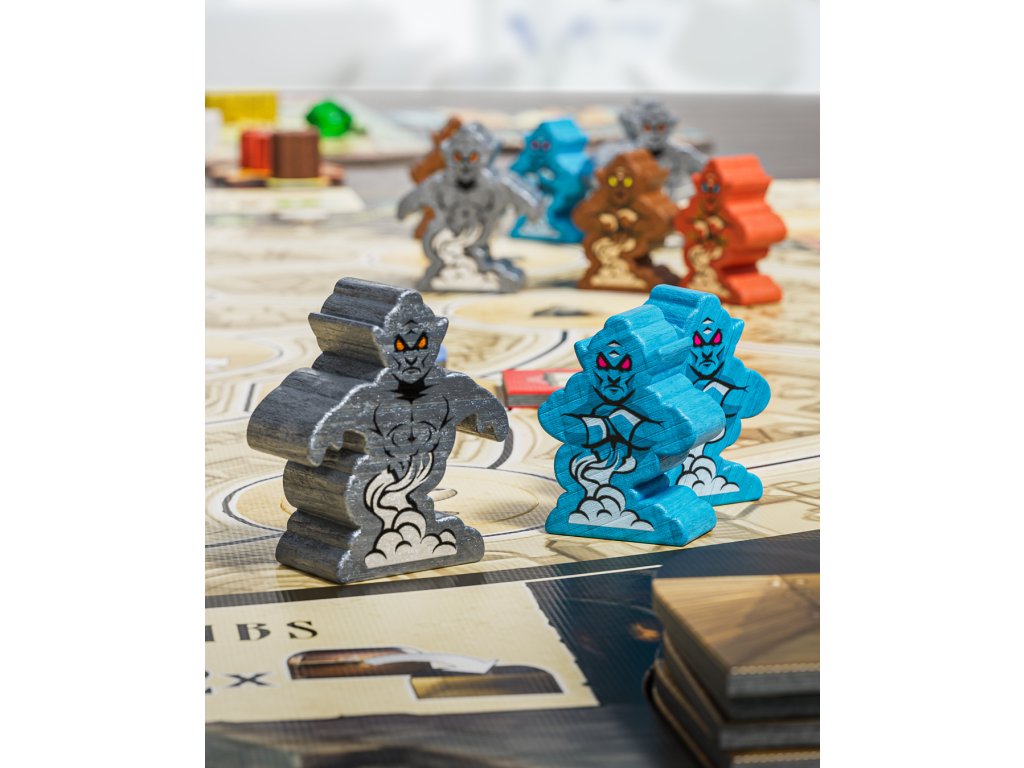 V každém kole však dosáhnete pouze na jednu ze dvou nebo tří možných lokací, takže je třeba pečlivě plánovat, abyste v okamžiku střetu s džiny byli připraveni je polapit. Hra končí když všech šest veledžinů bylo polapeno nebo odstraněno ze hry. Body dostáváte téměř výlučně za polapené džiny.