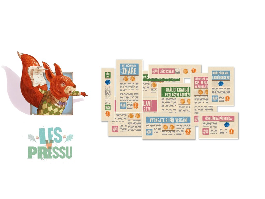 Svižná hra pro 1–6 hráčů o skládání novinových článků plných vtipných titulků od Petera McPhersona (Městečka na dlani), zasazená do světa rozkošných lesních tvorů, kterou ilustroval Ian O’Toole (hry Vitala Lacerdy).