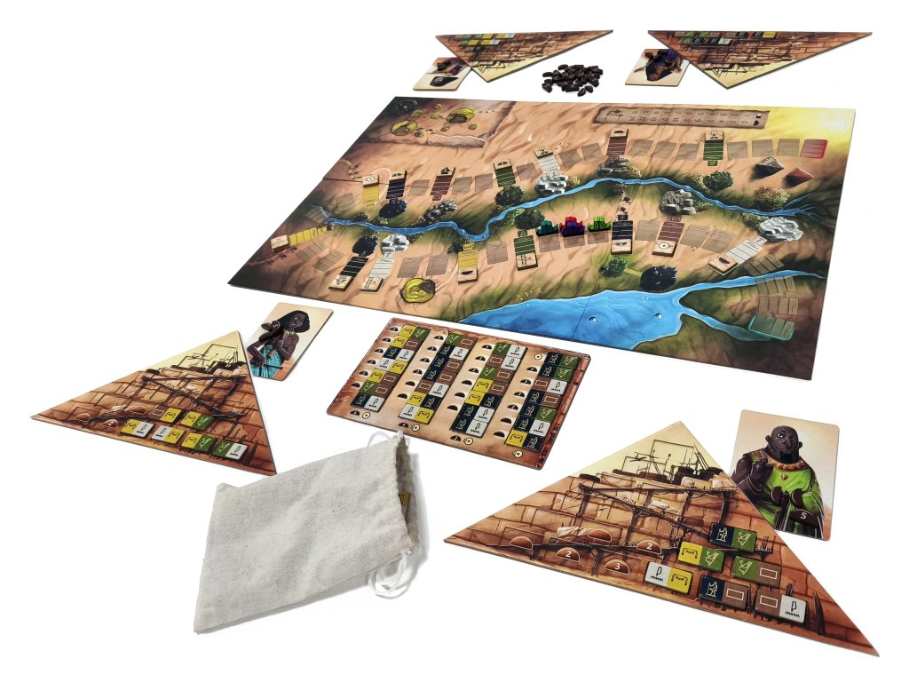 V průběhu hry budete cestovat po Nilu, z Káhiry až do vzdálené Núbijské pouště a zpět. Cestou navštívíte známé lomy poskytující zlato, žulu, vápenec, bílý vápenec a čedič. Dokážete využít nejlepší příležitosti, které tyto lomy poskytují?