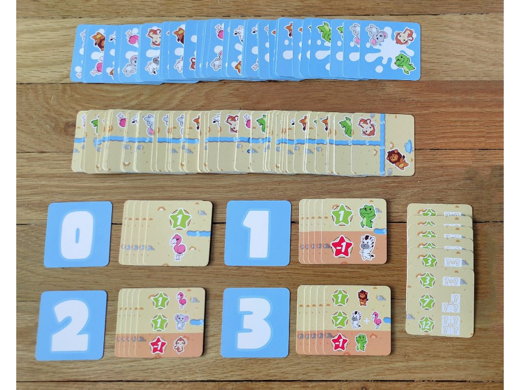 Cáklé safari je svižná hra v reálném čase, která trvá pouze 90 vteřin a pojme až 6 hráčů. Na začátku si vyberete jednu ze 4 obtížností bodování. Ze všech karet safari utvořte nesouměrnou hromádku uprostřed stolu. Pusťte časomíru!