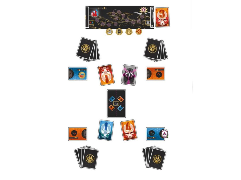 Kitsune jsou rozděleny do 2 klanů: Zenko (modré karty) a Yako (oranžové karty) po 1 až 3 hráčích. Od začátku hry máte přiřazenou svoji barvu klanu, ale během hry musíte hrát jak s kartami svého klanu, tak s kartami soupeře.