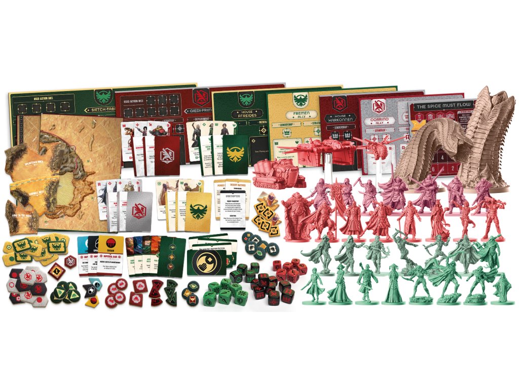 V této asymetrické hře musí rod Harkonnenů se svými vojáky ovládnout Arrakis, protože kdyby koření přestalo proudit, ztratili by podporu mocností uvnitř Impéria. Mezitím Paul Muad‘Dib, mladý atreidský vůdce a mesiáš, musí vést fremenské vzbouřence a skrze své jasnozřivé vize najít cestu k osudu Arrakisu, nevyhnutelnému džihádu a budoucnosti, kde se stane Kwisatz Haderachem. Zatímco Harkonnenové se spoléhají na svou techniku jako ornitoptéry a karyoly, Atreidové si podmanili sílu pouště a do bitvy jezdí na obrovských písečných červech. Každá frakce používá odlišnou strategii postavenou na unikátních velitelích a sadě plánovacích karet, aby dosáhla svých vlastních podmínek vítězství.