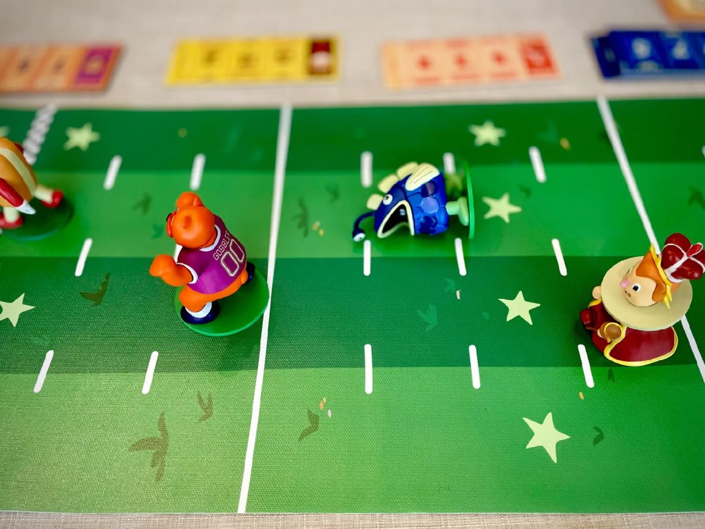 Zamíchejte balíček, odhoďte tři karty a poté odkrývejte karty z balíčku jednu po druhé, přesouvejte maskoty po trati, přičemž někdy mohou vybočit do jiného pruhu a srazit jiného závodníka, někdy se otočit, někdy se všichni pohybovat najednou a někdy jet jen pozpátku! Pokud závodník sjede z trati nebo bude sražen, když už leží na zemi, je diskvalifikován. V případě potřeby zamíchejte všechny karty v balíčku, znovu odhoďte tři karty a pokračujte v závodě, dokud nejsou obsazena všechna čtyři místa na stupních vítězů. Vyplaťte sázky na základě těchto výsledků.