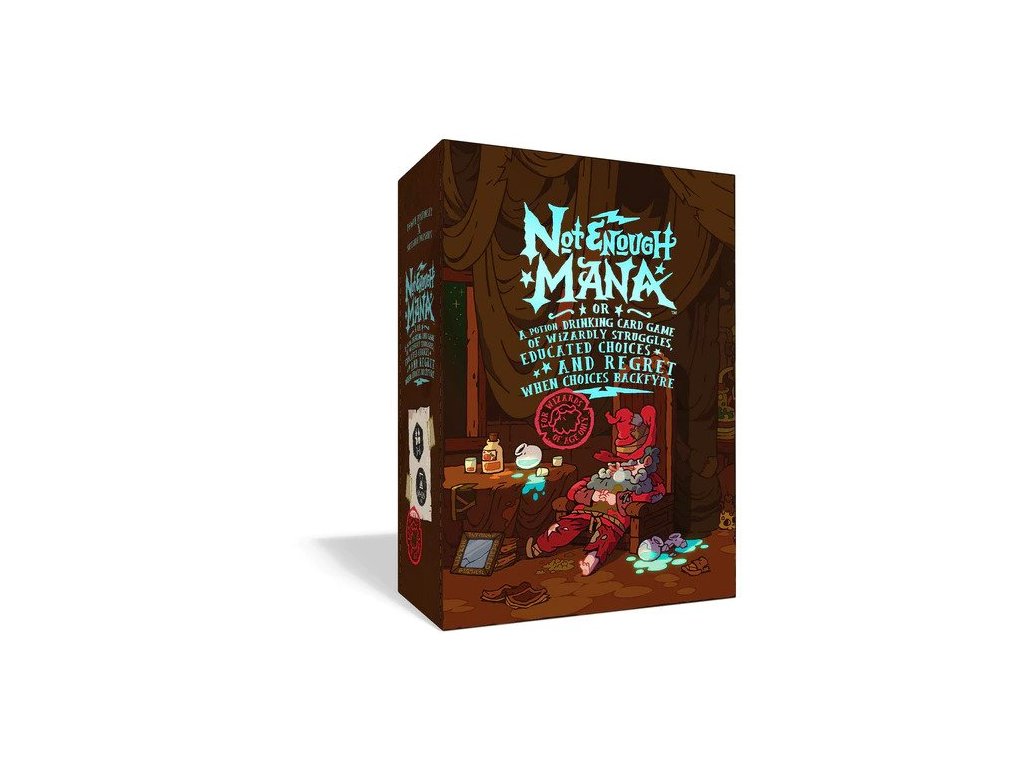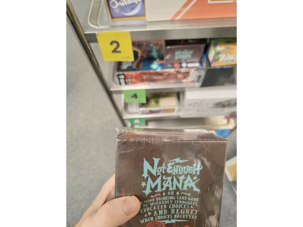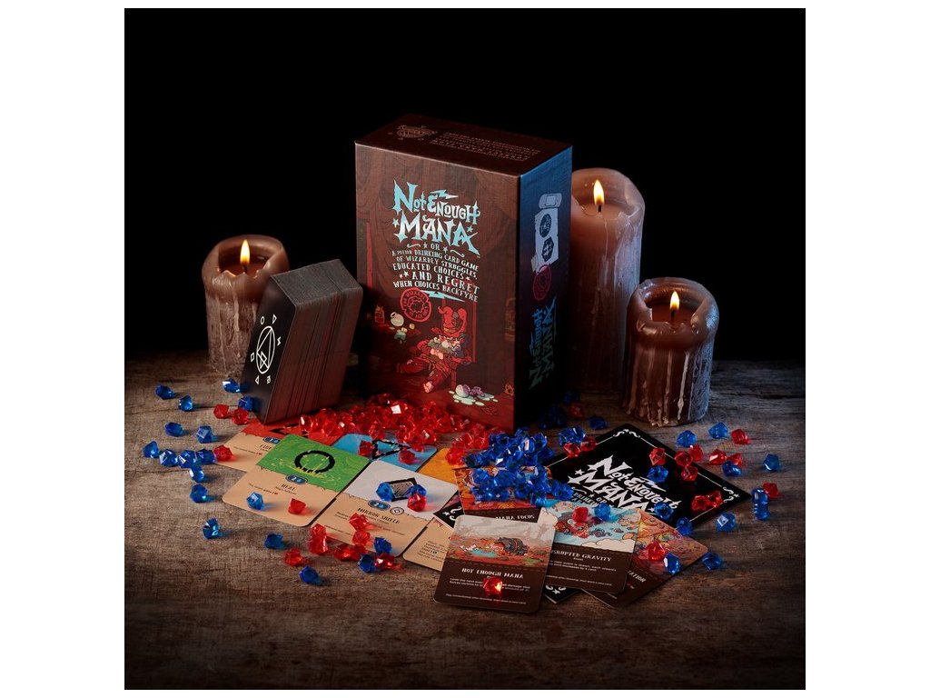 Not Enough Mana je karetní hra s "lektvary" pro 3-6 nebojácných čarodějů (věk pro pití lektvarů se může lišit v závislosti na zákonech vašeho království). Budete se navzájem ničit pomocí epických kouzel, kleteb a artefaktů a zároveň si doplňovat manu pitím kouzelných lektvarů*.
