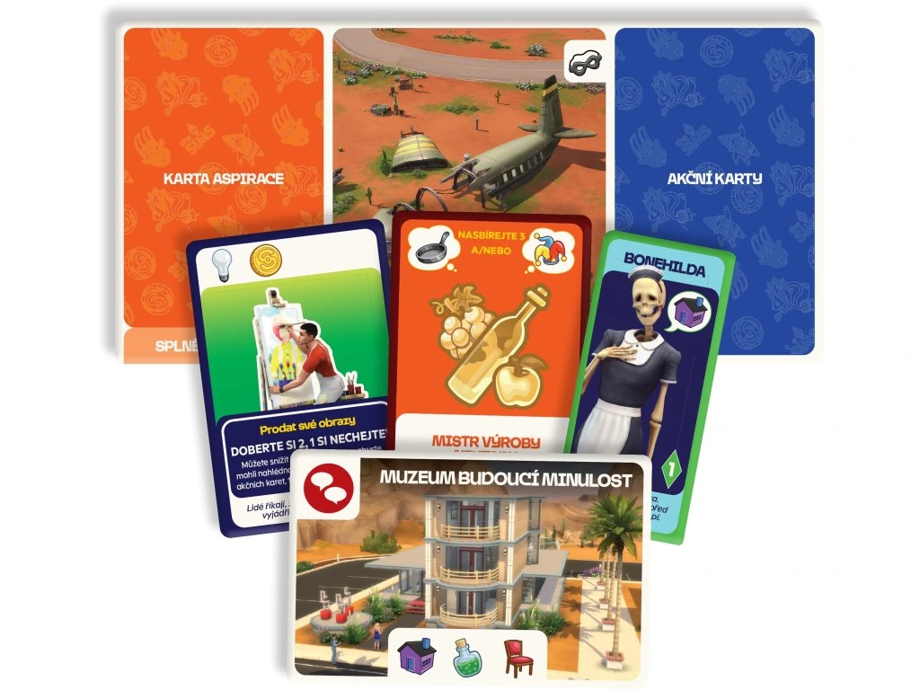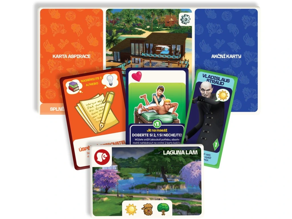 - Karty ikonických simíků oživují známé postavy, jejichž efekty dokážou výrazně zamíchat průběhem hry a změnit vaše plány.