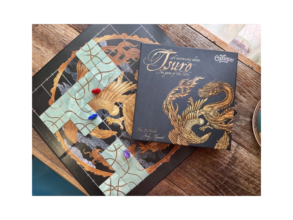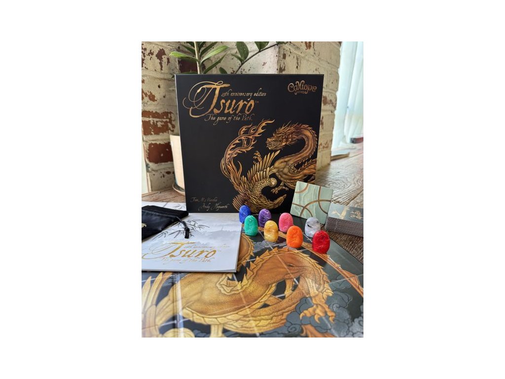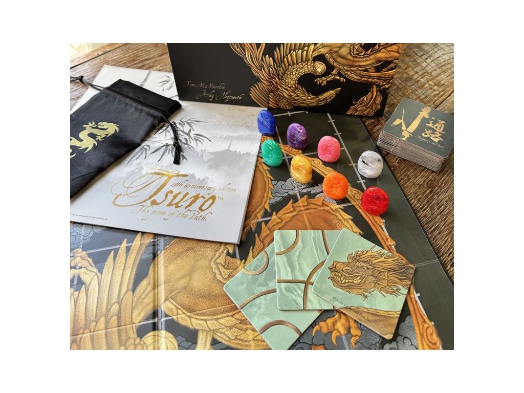Tato velmi speciální edice hry Tsuro: The Game of the Path k 20. výročí je zdobena novými ilustracemi v bohatém zlatém provedení na elegantním černém pozadí. Dílky jsou z umělého nefritu a prémiové dračí kameny jsou z imitace mramoru a žuly a jsou uloženy v luxusním sáčku na figurky. Tsuro je nyní elegantnější než kdykoli předtím!