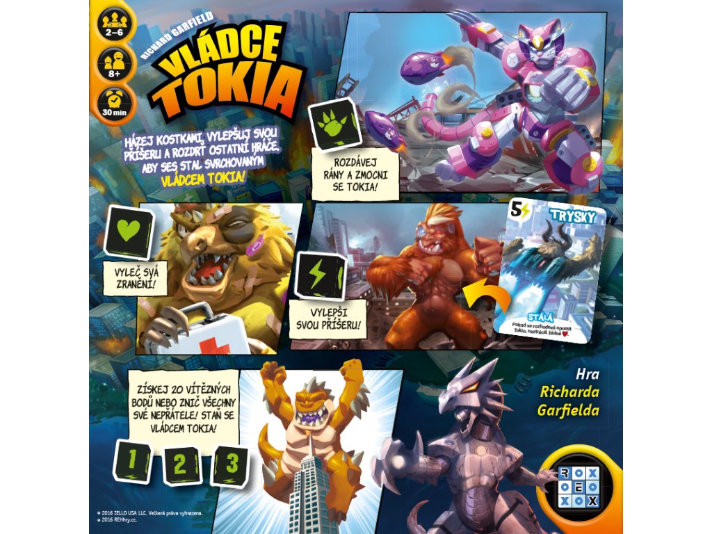 Vládce Tokia je kostková hra, ve které se stáváte jednou z příšer, které bojují o nadvládu nad Tokiem. Při hře se tak můžete cítit jako v japonských monsterfilmech a taky si řádně zaničíte! Vžijte se do role Roboopa, Mecha Draka či obřího roztomilého Kyberkotěte - perfektní grafika tomu rozhodně napomůže! Hráči házejí kostkami a schraňují symboly úderů, energie, léčení a vítězných bodů. Za jejich šikovného využití se mohou stát vládcem Tokia. Ale pozor, většinou je to jen dočasné, protože králem chce v Tokiu být přece každý! Vítězí ten, kdo se jako poslední udrží na nohách nebo ten, kdo získá dostatek vítězných bodů. Autorem hry je Richard Garfield, tvůrce legendárního Magic: The Gathering, a rozhodně nezklamal. Vládce Tokia považujeme za originální a interaktivní hru, kterou si hráči pořádně užijí! Jde o druhou edici hry, v nové grafické úpravě a obměnou některých postav, herně se tato edice od první neliší.