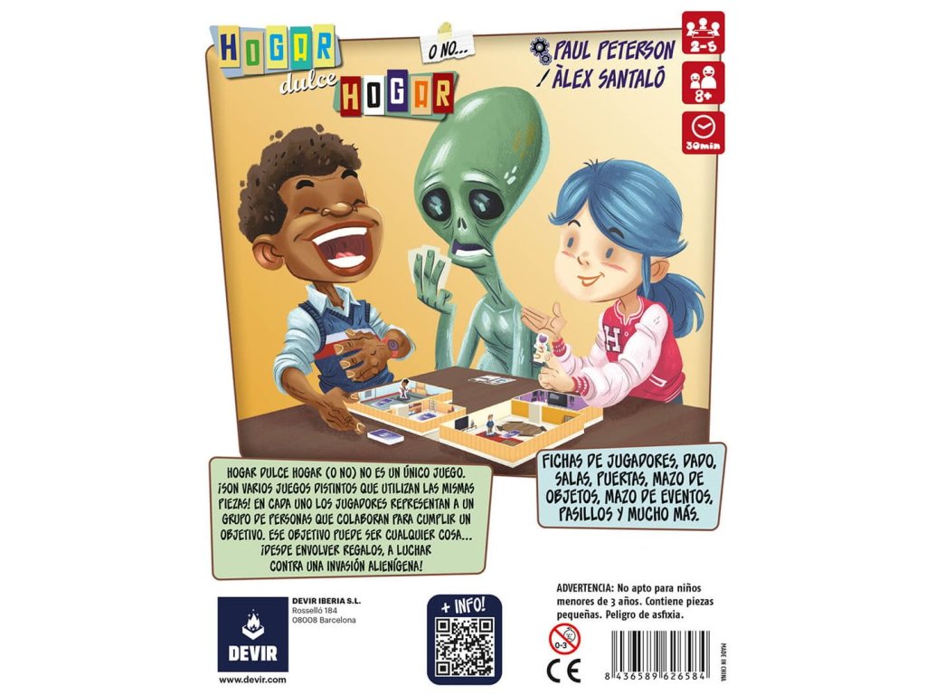 V kooperativní deskové hře Home Sweet Home (or Not) musí 2-5 hráčů spolupracovat, aby splnili cíle stanovené v jedné z pěti misí, které jsou součástí hry. Každá mise vyžaduje jiné uspořádání domu, který je postaven z různých místností propojených 3D dřevěnými dveřmi.