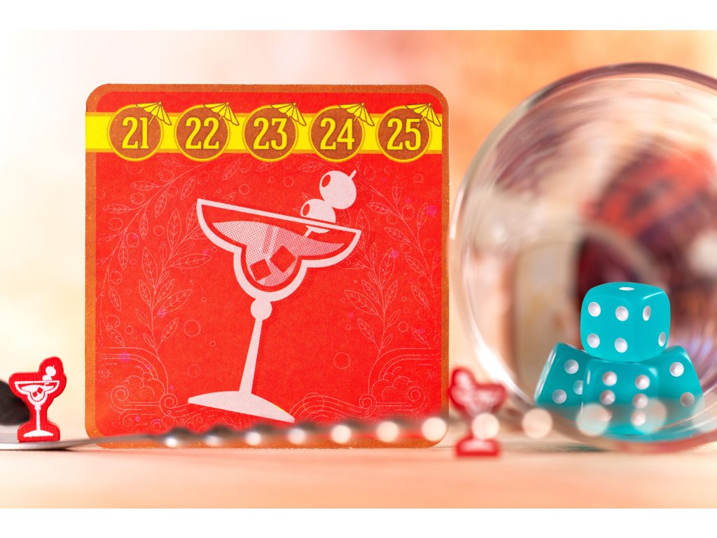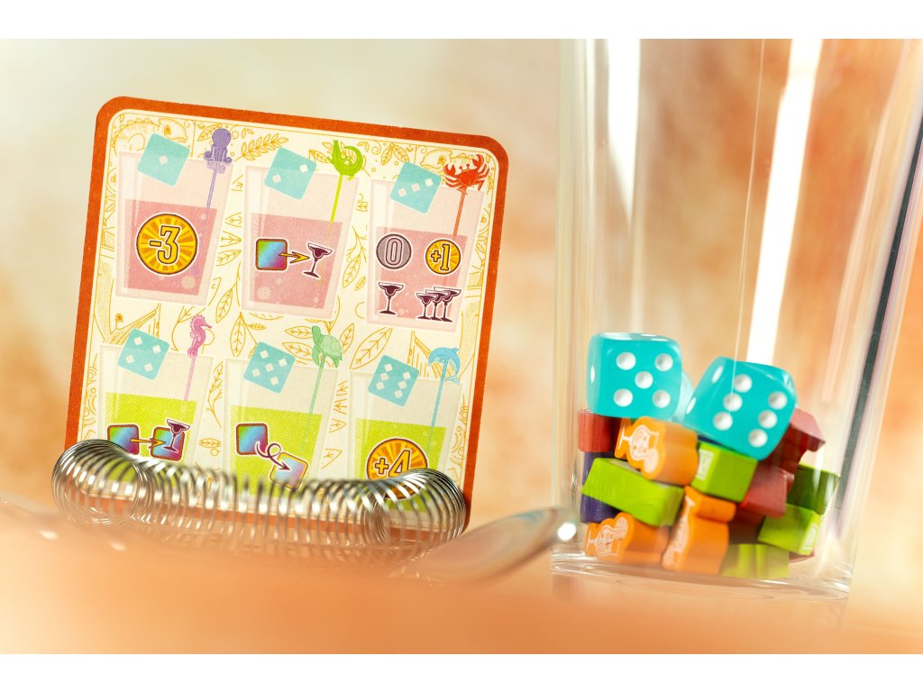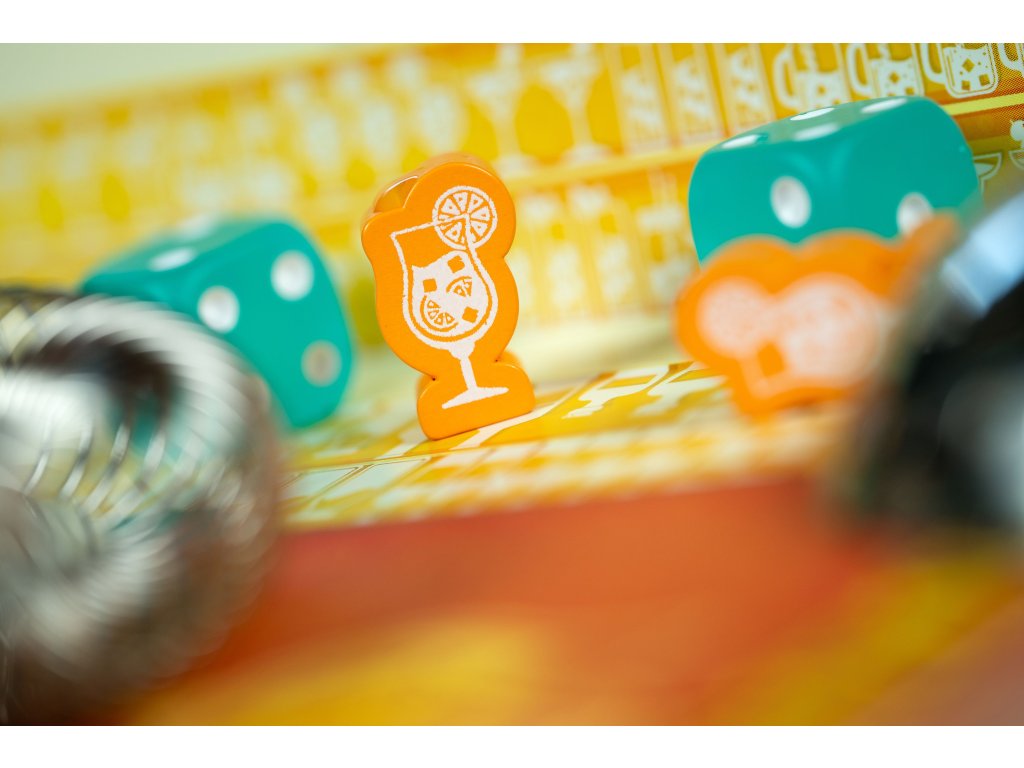 Ale ten nejrychlejší způsob, jak vyhrajete, je umístit 4 své žetony koktejlů do řady a vytvořit tak slavnou Piña Kostkádu. Pak se stanete vítězi okamžitě! Podtácky ve hře představují reálné ingredience (kromě alkoholu). Můžete si tedy po hře namíchat i svůj vítězný koktejl.
